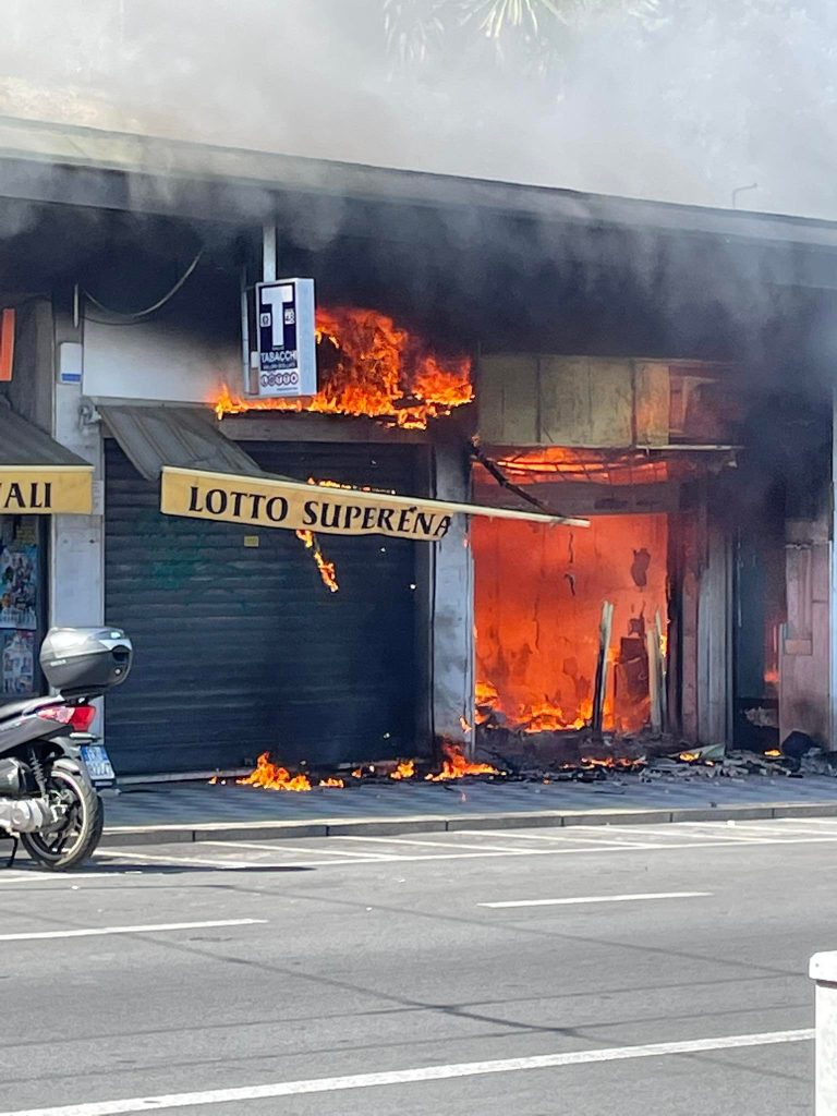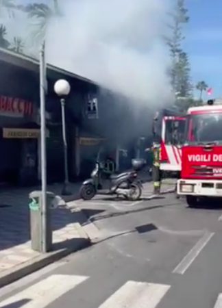 Momenti di paura a Sanremo per uno spaventoso incendio divampato in un esercizio commerciale in Corso Imperatrice.