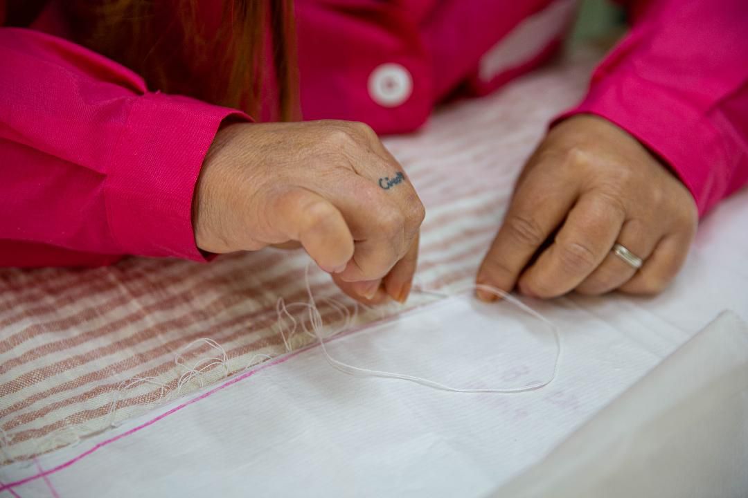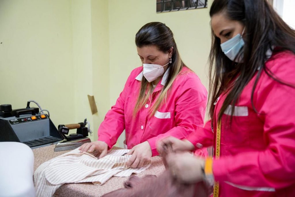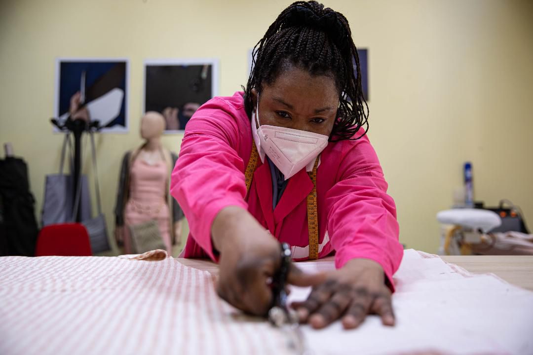 L’ambiente è molto tranquillo, è bello vedere il loro entusiasmo nel poter lavorare a un progetto e avere la possibilità di mettersi in gioco. Alcune già avevano esperienza, altre invece stanno imparando un mestiere ed è davvero importante. Vedere poi i miei vestiti appesi per me è stato un sogno che si realizzava”.