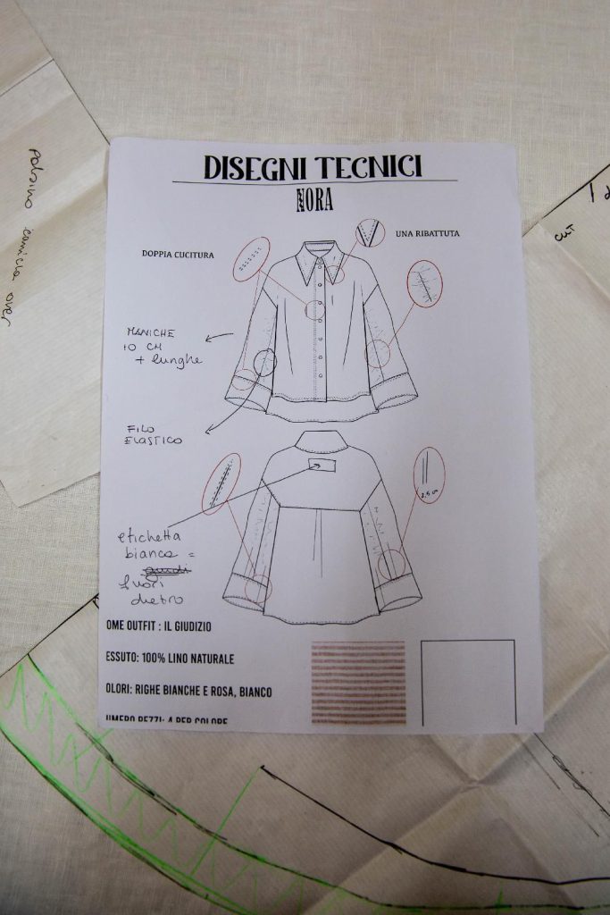“Desideravo che la mia collezione coinvolgesse un’associazione con un fine benefico. Ho fatto delle ricerche e ho avuto la fortuna di scoprire il nuovo progetto delle donne del carcere di Pozzuoli che hanno aperto una sartoria etica proprio nella casa circondariale. Dopo essermi messa in contatto con il responsabile del progetto contattato ho mandato i tessuti e i cartamodelli. Sono poi andata a Pozzuoli a trovarle ed è stato un momento bellissimo. Ci siamo conosciute e ci siamo confrontate sul lavoro, scambiandoci consigli e suggerimenti.