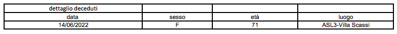 Un decesso registrato in tutto il territorio regionale, nell’arco delle ultime 24 ore.