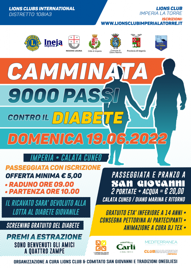 Alle 9.00 apertura iscrizioni per la Camminata 9000 Passi contro il Diabete, in collaborazione con Lions Club La Torre, con partenza alle 10.00. Alle 12.30 apertura delle cucine e ristorazione.