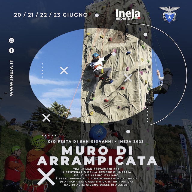 Dalle ore 18.00 fino alle 23.00 in via del Cantiere, muro di arrampicata gestito da istruttori C.A.I. (Club Alpino Italiano), in occasione dei 100 anni della sede di Imperia.