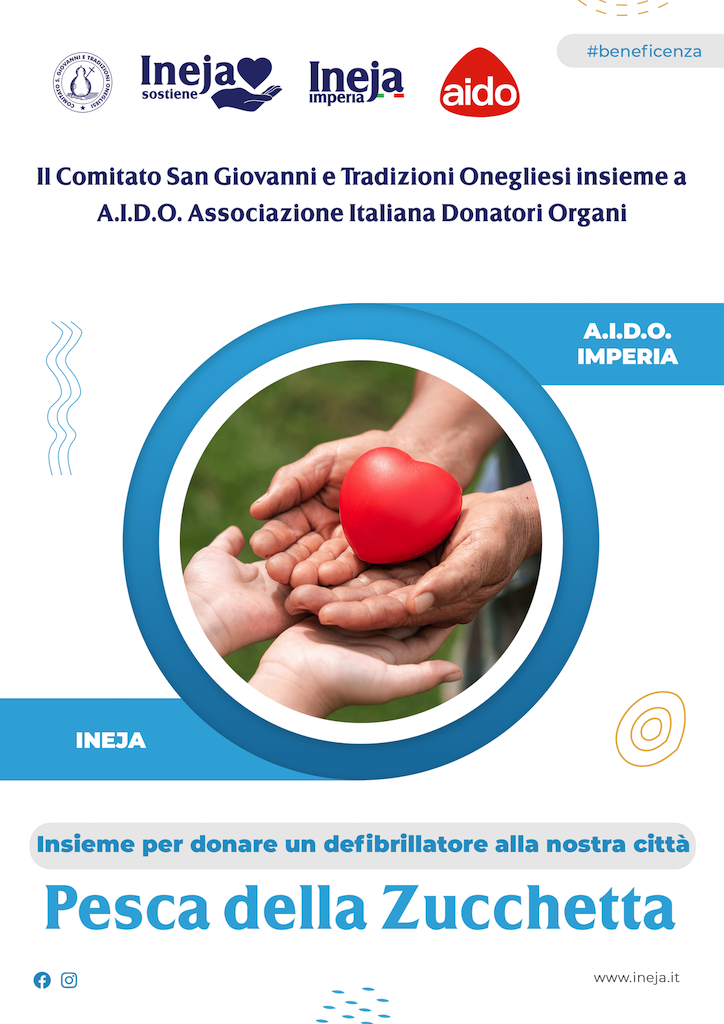 Anche quest’anno il Comitato San Giovanni ha dato vita alla classica tenda della beneficenza. Questa volta a beneficiare della raccolta sarà l’AIDO Associazione Italiana Donatori Organi, i quali riceveranno in dono un defibrillatore da devolvere poi a una scuola o un ente pubblico ancora da concordare della Città di Imperia al fine di poter dare un ritorno diretto alla nostra comunità.