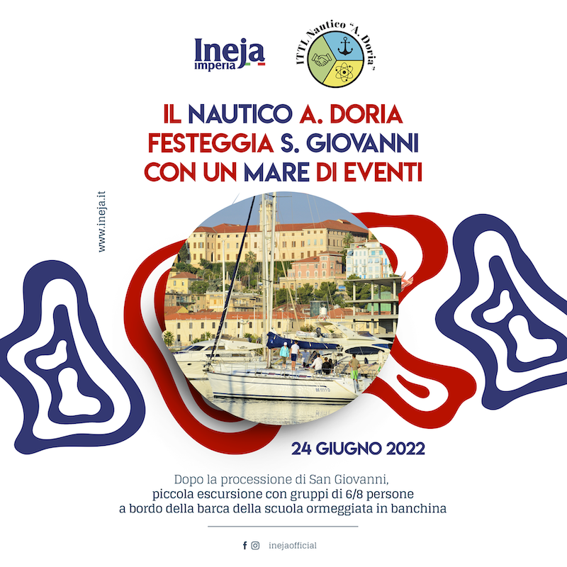 la collaborazione che si articola in alternanza scuola-lavoro con l’Istituto Tecnico Nautico “A. Doria” di Imperia dove i ragazzi ogni giorno aiutano l’area ristorazione. Il 24 giugno in occasione della processione, aiuteranno a portare la statua del Santo con partenza da Piazza San Giovanni alle ore 17.30. Al termine, in Banchina Aicardi, assisteranno gli imbarchi del pubblico sul Bavaria (barca del’Istituto Nautico) dove saranno effettuate piccole escursioni con gruppi di 6/8 persone.