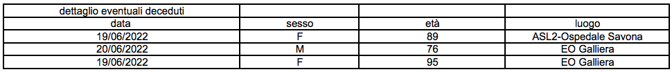 Sono tre i decessi registrati in tutto il territorio regionale nelle ultime 24 ore;