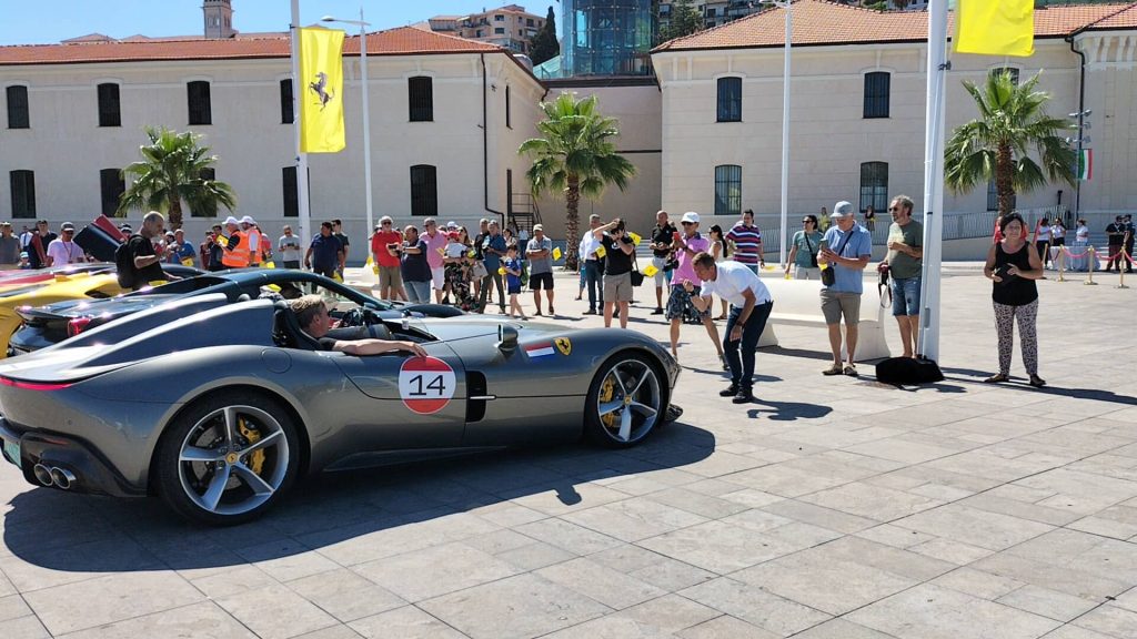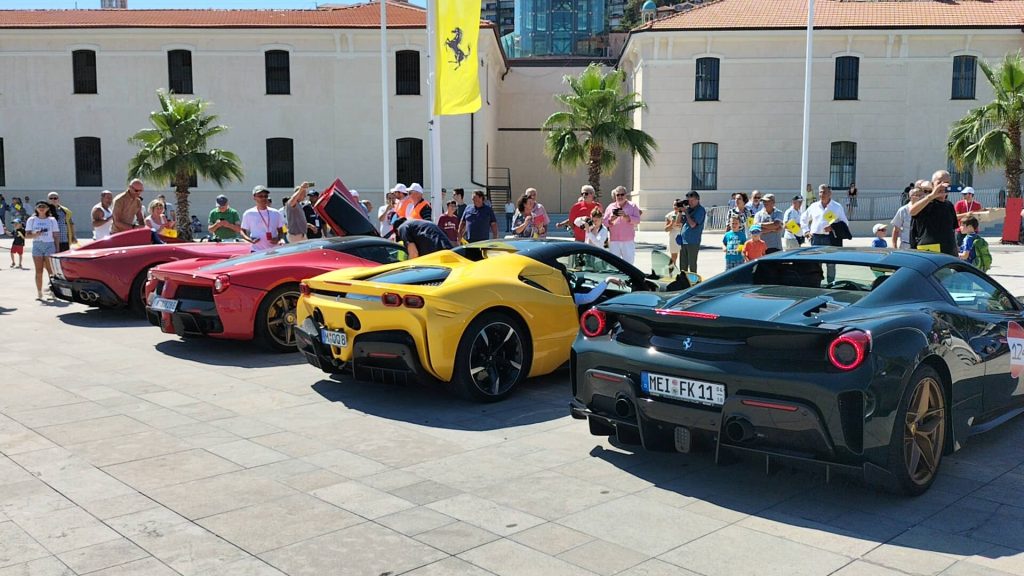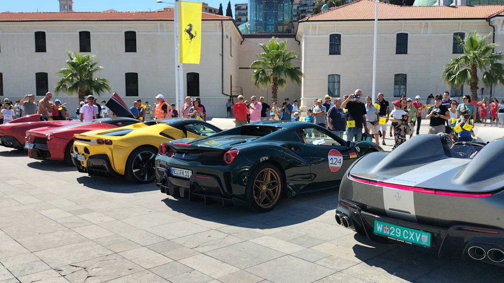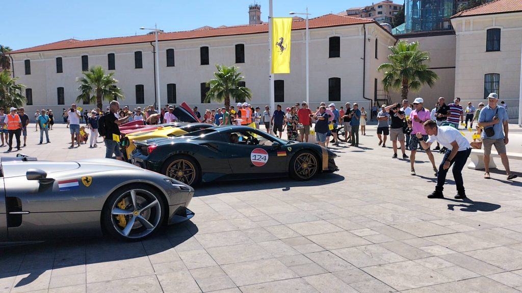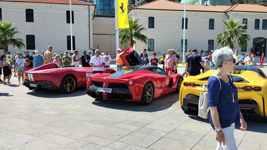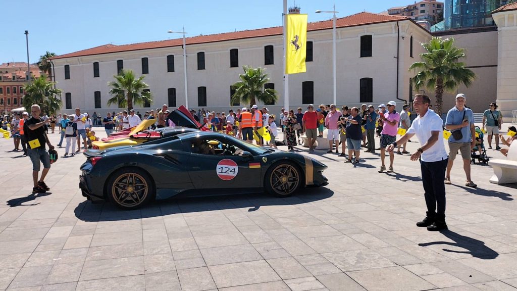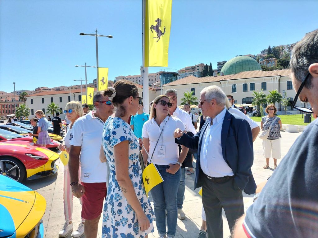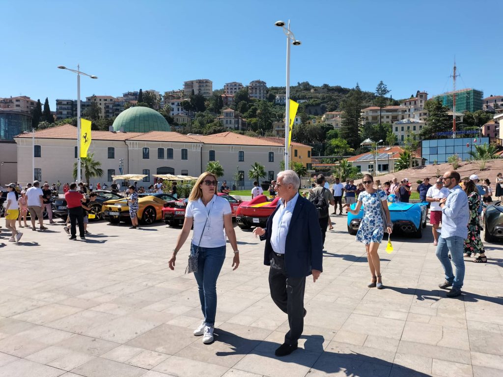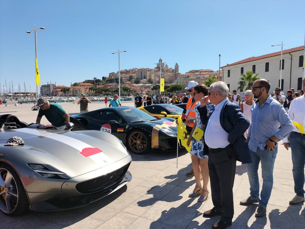 “È una location unica – commenta il sindaco di Imperia Claudio Scajola – questa di Calata Anselmi con il museo appena aperto, lo spazio tutto libero, con un buon decoro, con il verde, una location ideale per mettere insieme le belle barche del nostro porto turistico, alle spalle il Parasio, e tutta questa sfilata di Ferrari di notevole prestigio che rende, nelle immagini che saranno trasmesse, l’esaltazione giusta che si deve a questa bella città di Imperia”.
