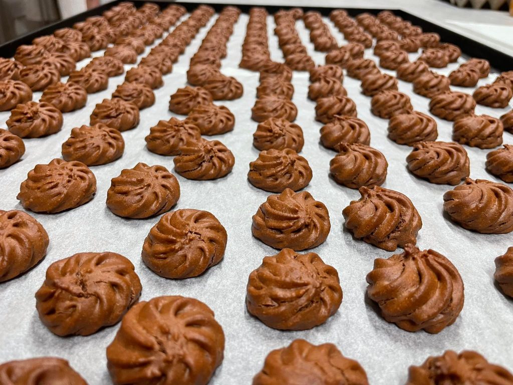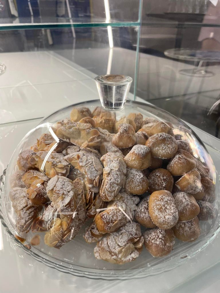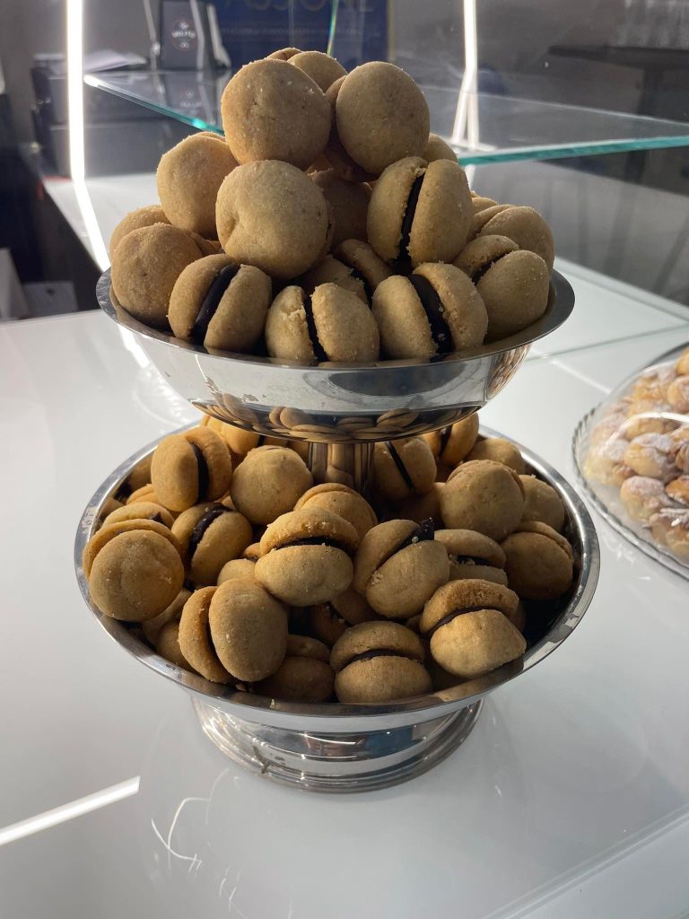 Imperdibile tutta la biscotteria, dai baci di dama ai cookies, e l’assortimento di pasticcini.