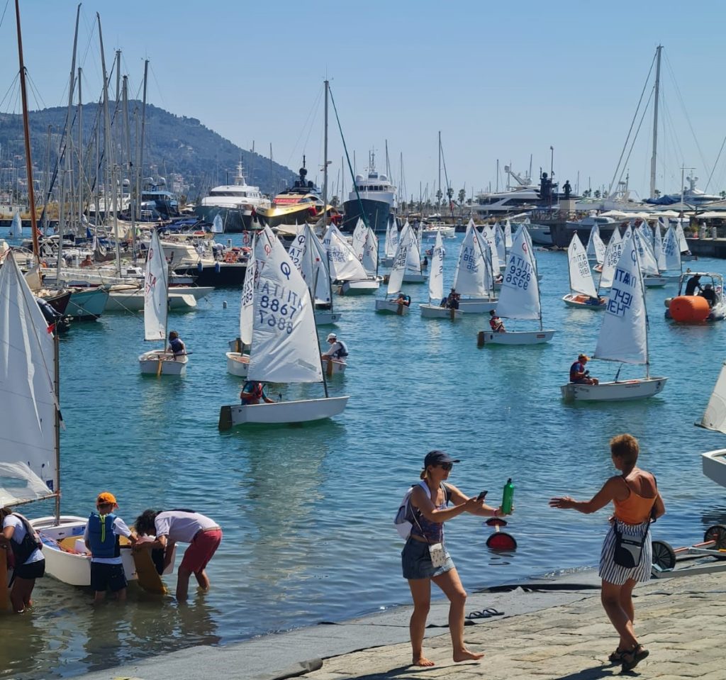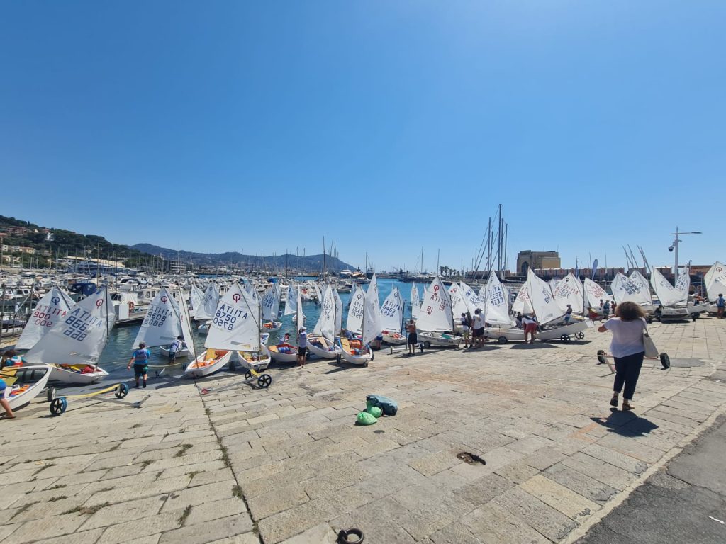 Un centinaio di vele si sono stagliate oggi sul mare di Imperia, in occasione delle selezioni per i Campionati italiani Optimist.
