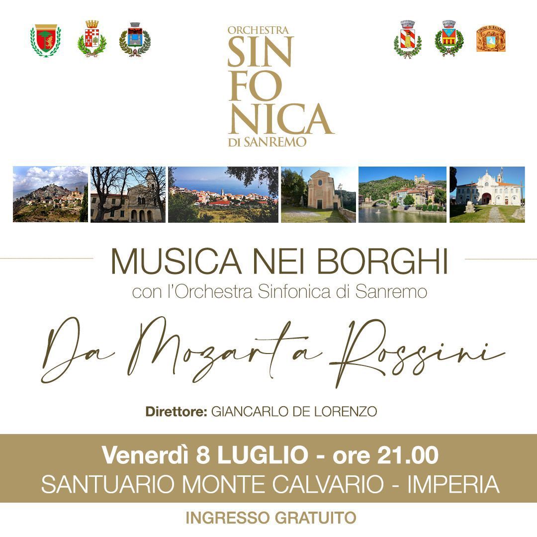 A partire dalle 21, nell’ambito della rassegna Musica nei Borghi, l’Orchestra Sinfonica di Sanremo presenterà “Da Mozart a Rossini”. Dirigerà Giancarlo De Lorenzo.