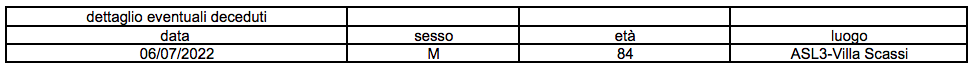Un decesso registrato in tutto il territorio regionale, nell’arco delle ultime 24 ore.