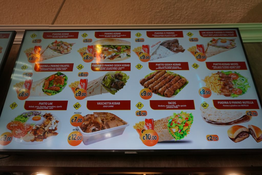 Kebab, hamburger, pollo e falafel possono essere serviti sia al piatto sia con panini, baguette, pane arabo, piadine o wrap, accompagnati da una grande varietà di salse e condimenti. Sono disponibili le opzioni più classiche ma anche le più sfiziose. Ecco alcuni esempi: