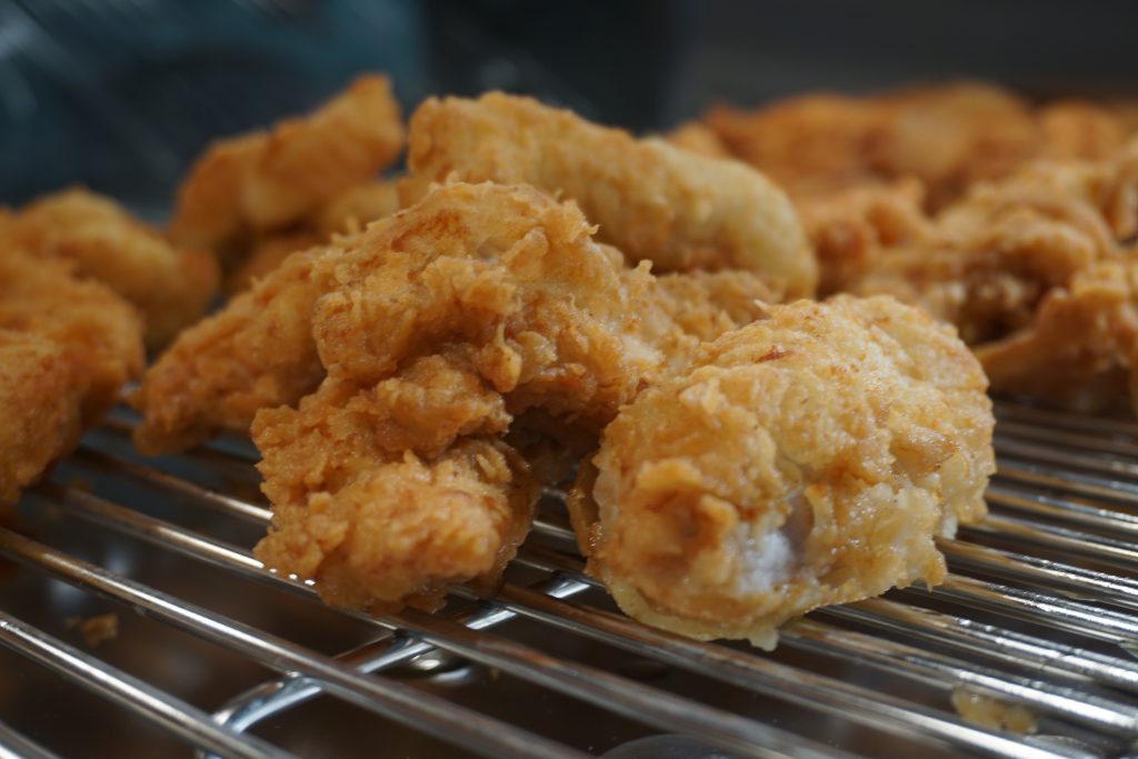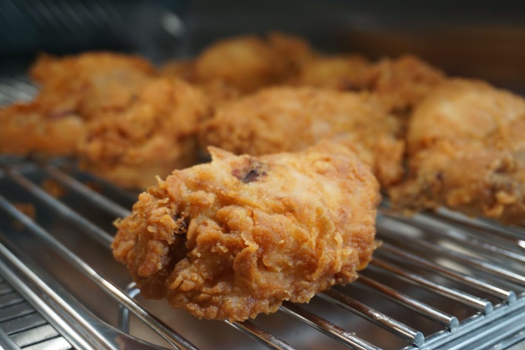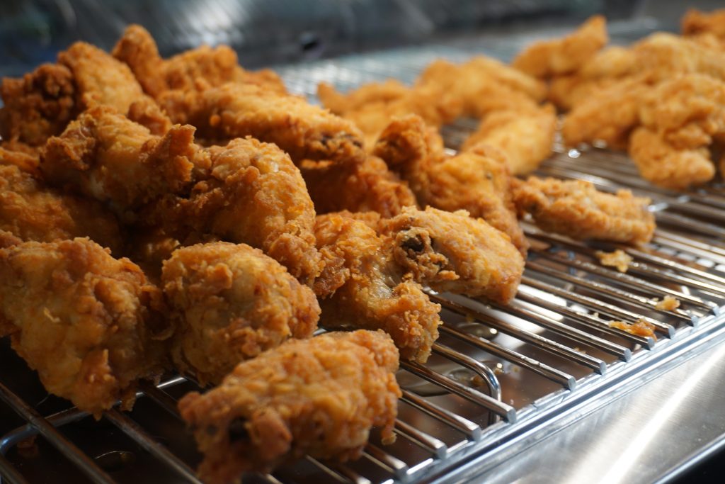 Gustosissime anche le cosce e le alette di pollo impanate.