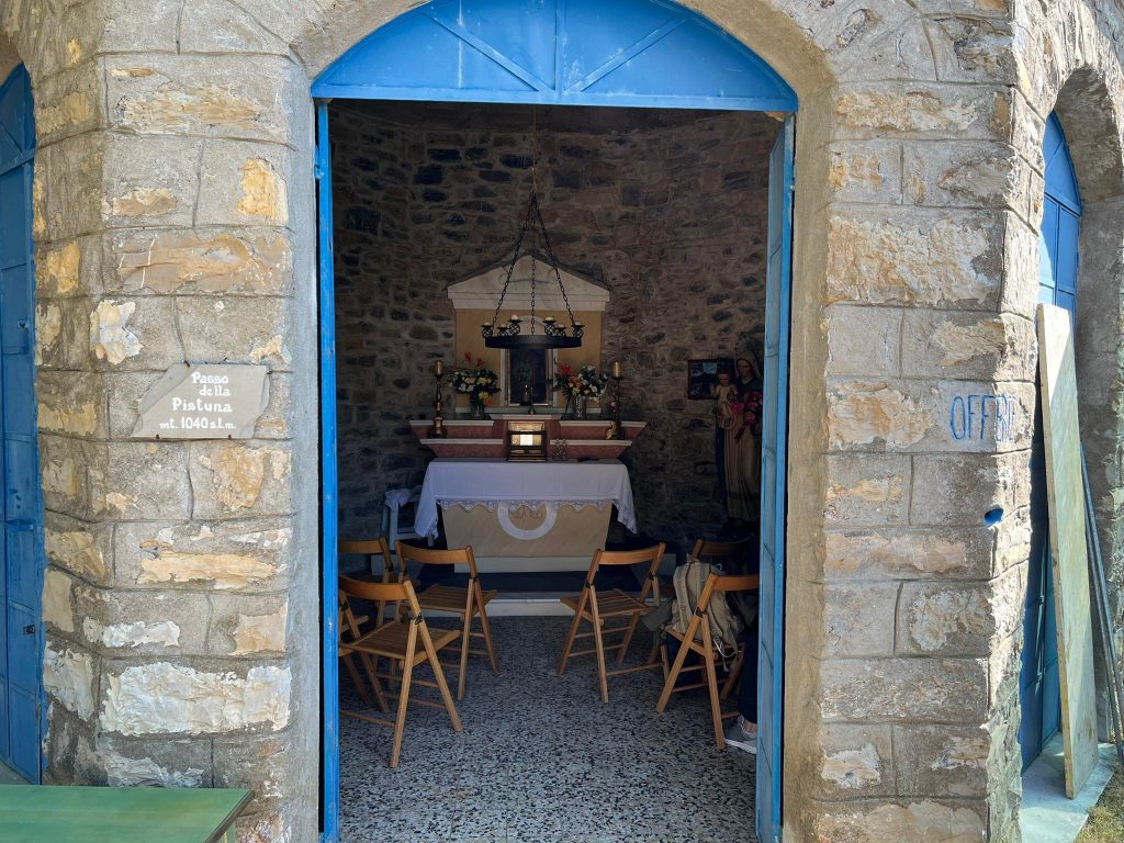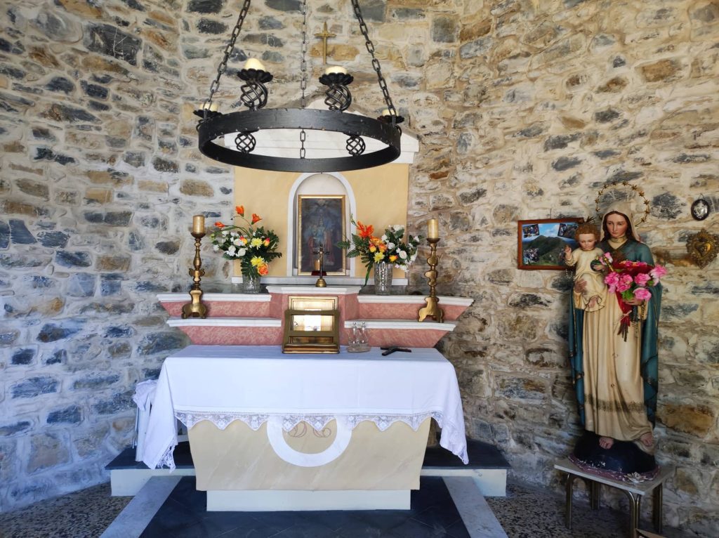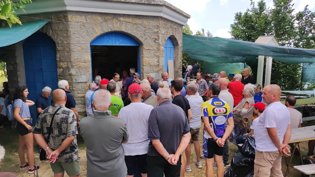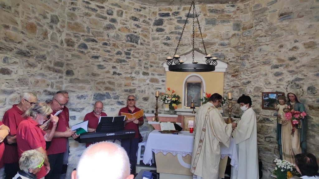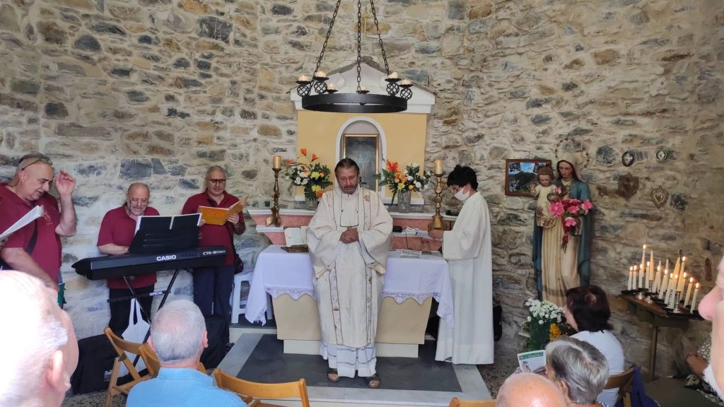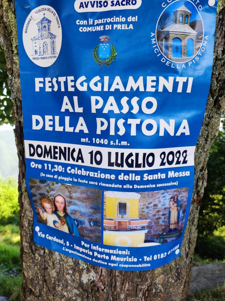 “Per due anni ho lavorato per rimettere a posto questa chiesetta costruita da mio nonno”. Lo racconta Giovanni Amoretti in occasione dei festeggiamenti al Passo della Pistona (o “Pistuna” in dialetto). Un appuntamento fisso ogni anno, ad eccezione dello stop a causa della pandemia, a 1.040 metri di altezza, nell’entroterra di Prelà.