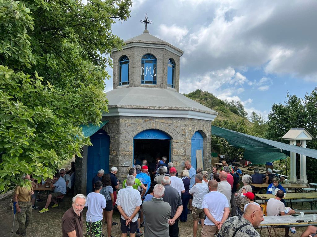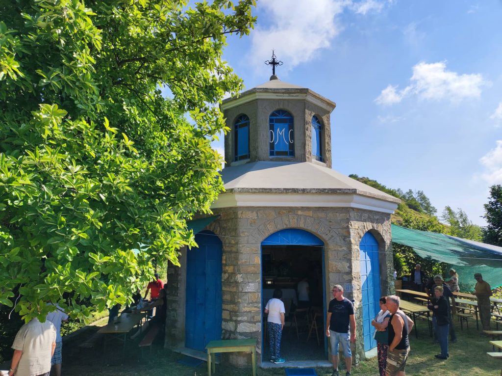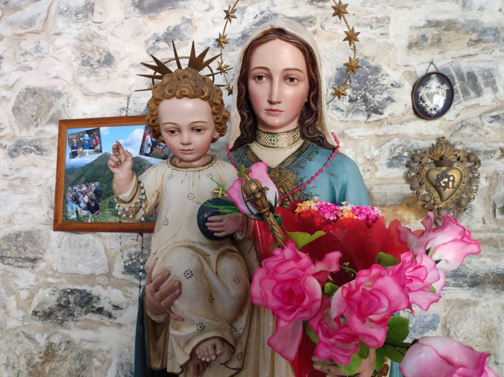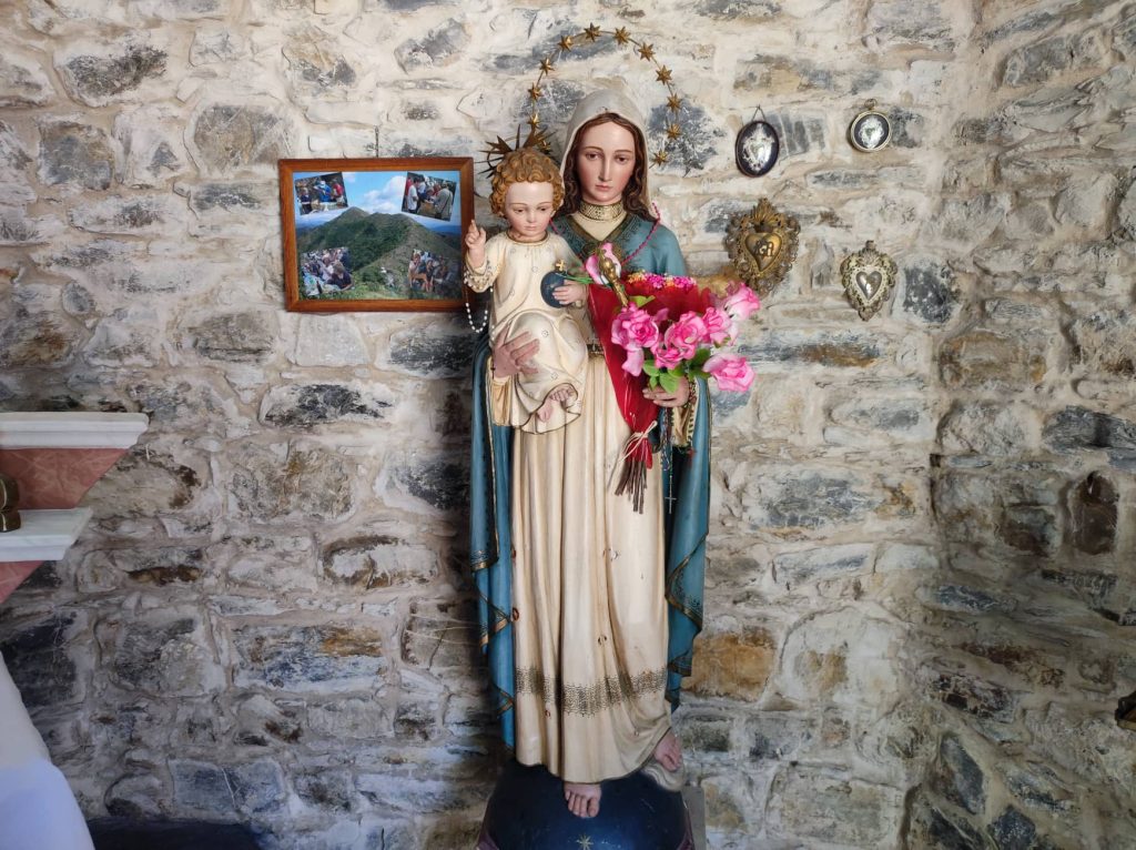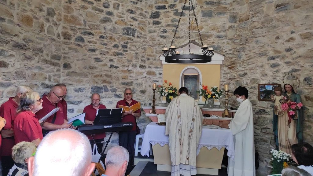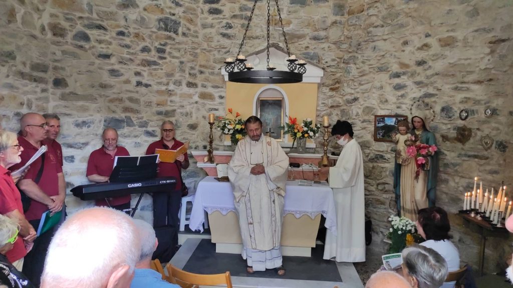 “Per due anni ho lavorato per rimettere a posto questa chiesetta costruita da mio nonno”. Lo racconta Giovanni Amoretti in occasione dei festeggiamenti al Passo della Pistona (o “Pistuna” in dialetto). Un appuntamento fisso ogni anno, ad eccezione dello stop a causa della pandemia, a 1.040 metri di altezza, nell’entroterra di Prelà.