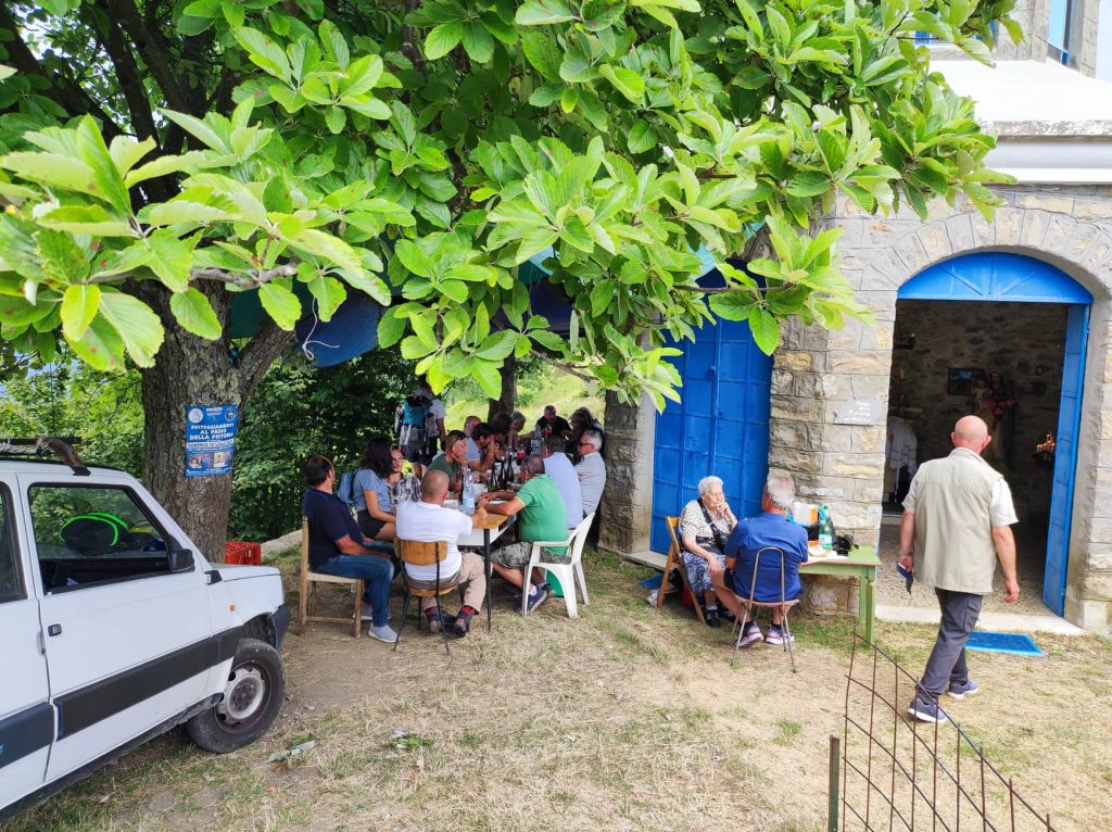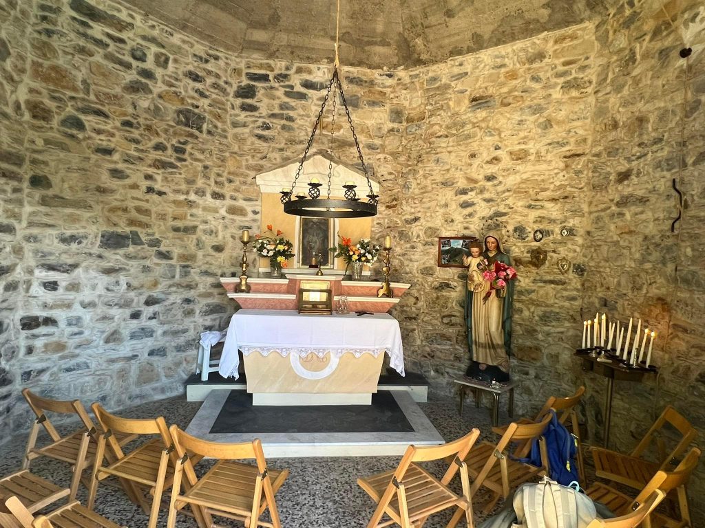 Ora veniamo qui una volta all’anno facendo più volte la strada. Per ristrutturarla ci ho lavorato per due anni tutte le domeniche. È stata ristrutturata dal tetto all’interno. L’altare era sui mattoni. Ho fatto il finto marmo, perchè ho la passione per cemento e pitture”.