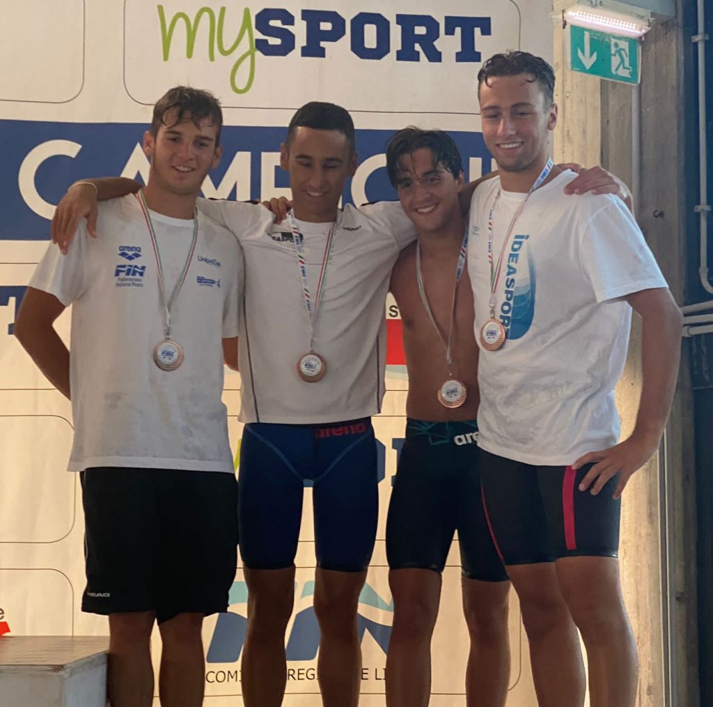 Importanti risultati sono stati conseguiti dai giovani atleti della società “Idea Sport” di Albenga, seguita a bordo vasca dal tecnico CAMPI Tiziana, nelle cui fila militano l’imperiese BOSTICCO Federico e il sanremese PANDOLFI Emanuele che insieme ai compagni di squadra CACCIAMANI Ruben e VERNALEONE Daniele si sono aggiudicati la medaglia d’argento e quindi il titolo di vice-campioni regionali nella staffetta 4×100 misti categoria Juniores;