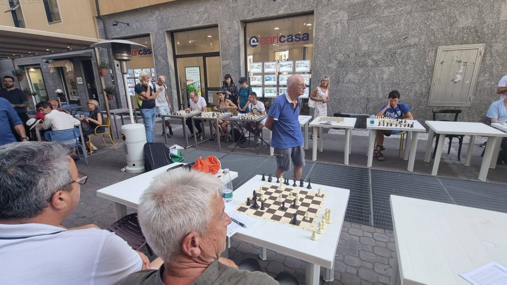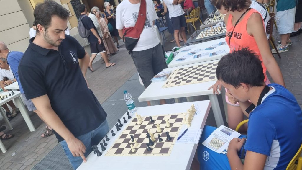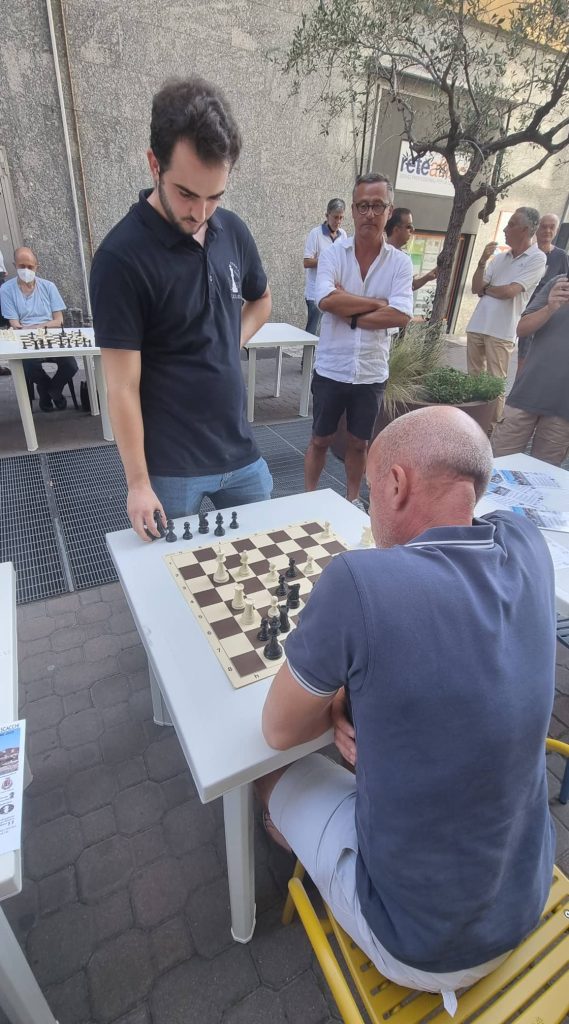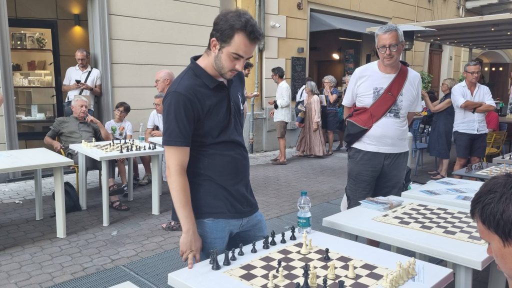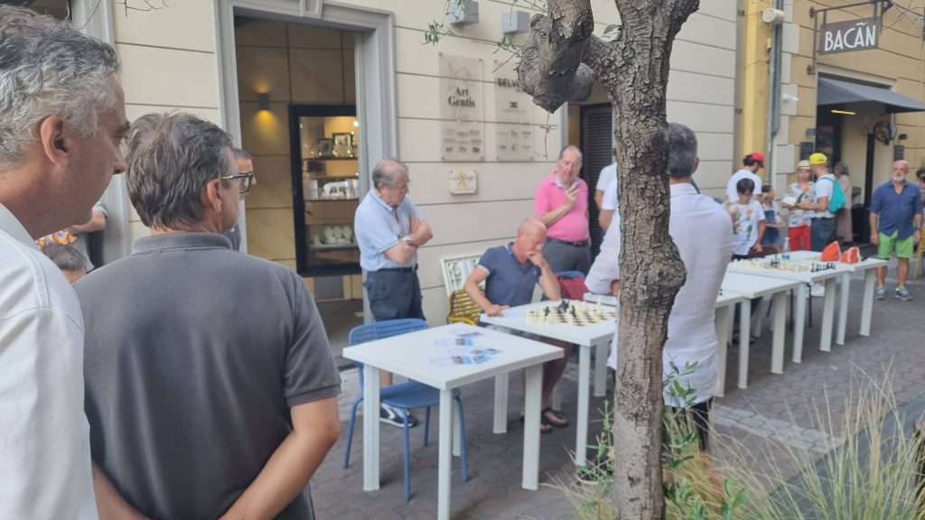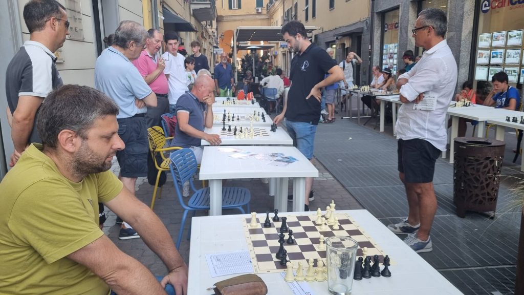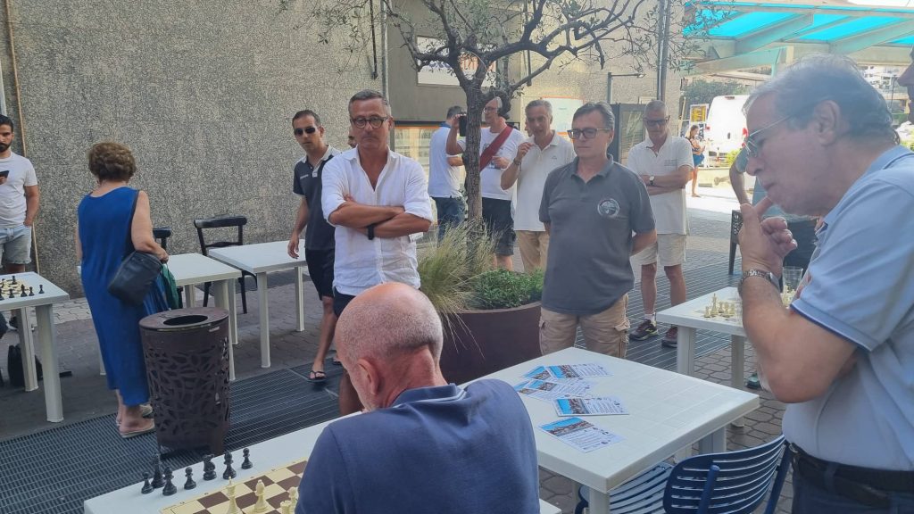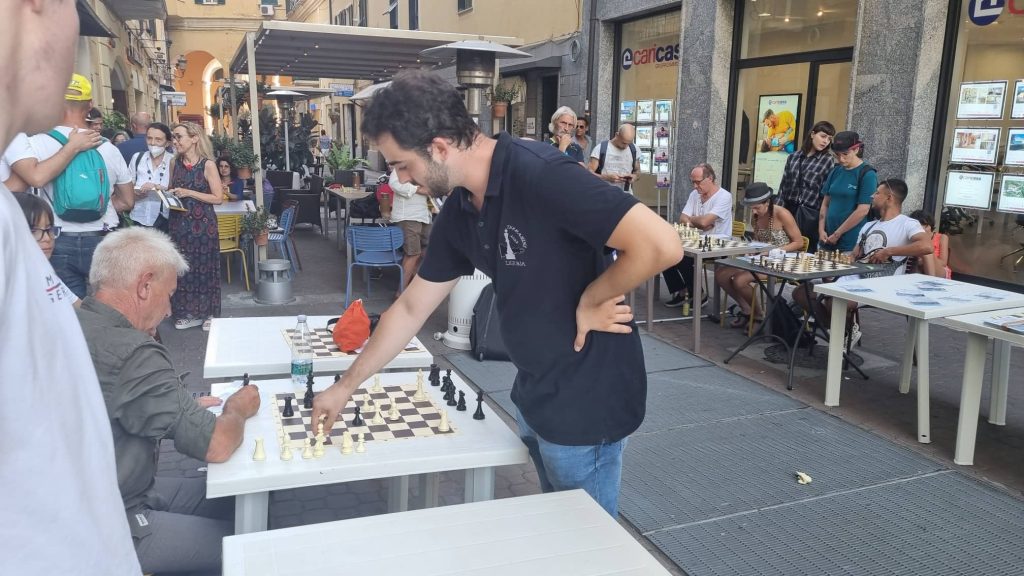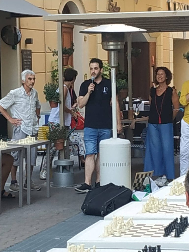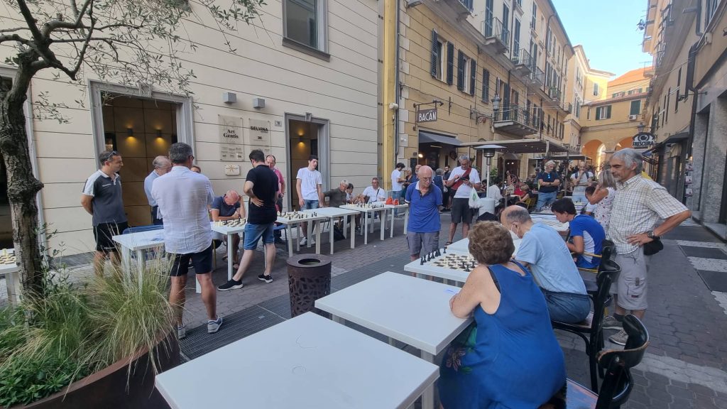 “Da solo contro tutti“. Questa la regola del maxi torneo di scacchi che si è svolto nel pomeriggio di oggi, venerdì 15 luglio, in via Vieusseux a Oneglia.
