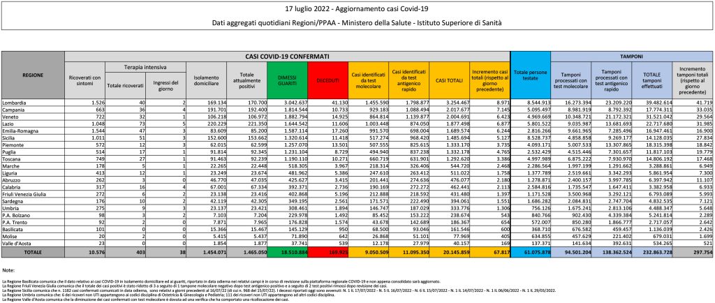 Qui il Bollettino completo_Coronavirus Liguria,_dati_Alisa-Ministero_del_17_luglio_2022