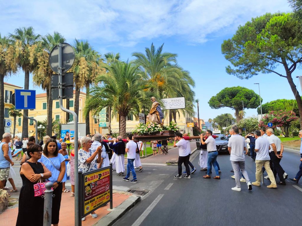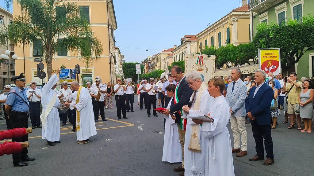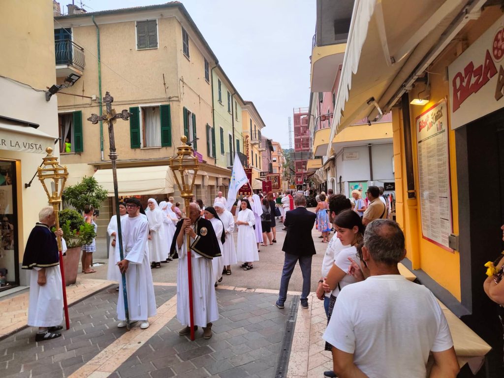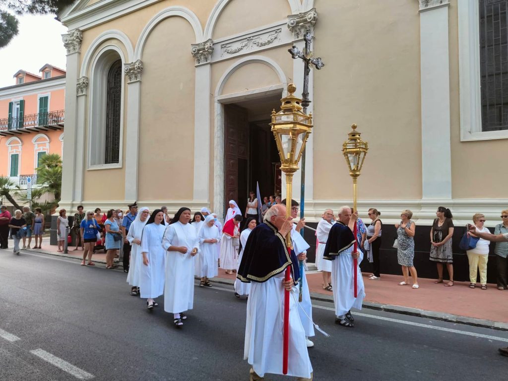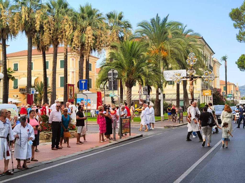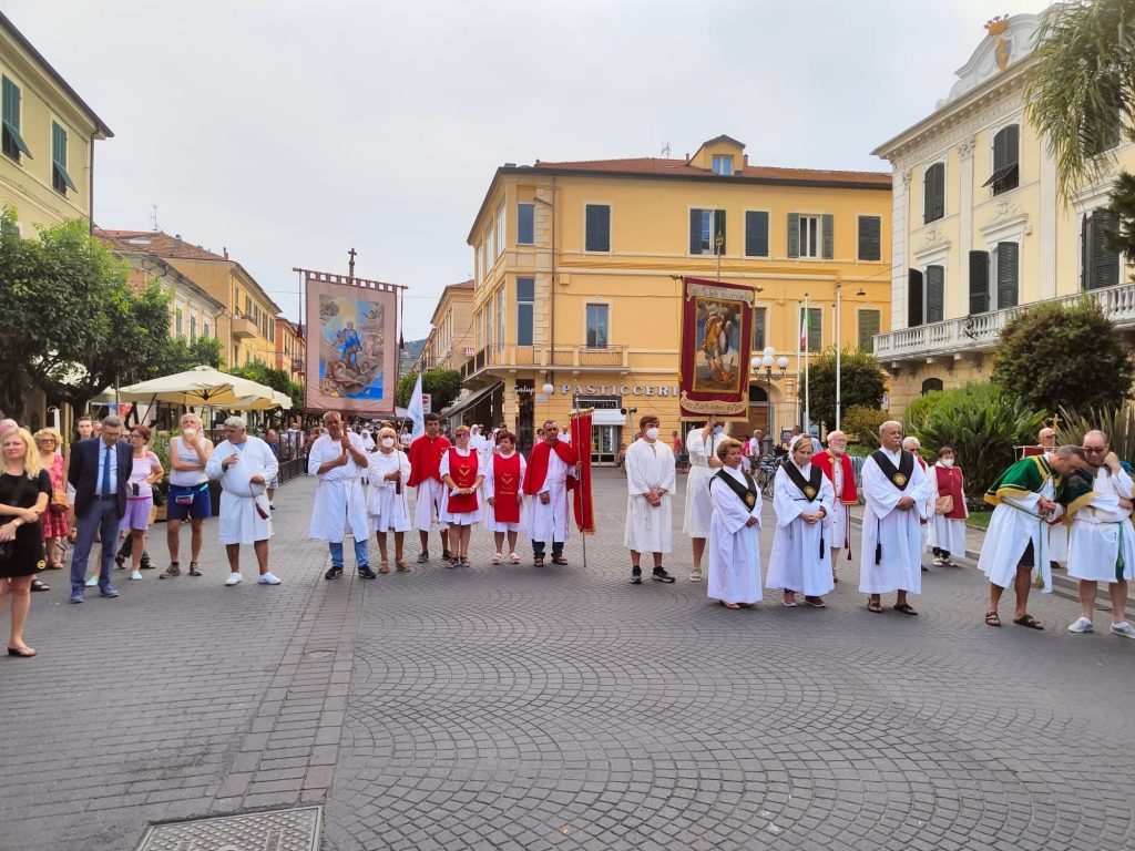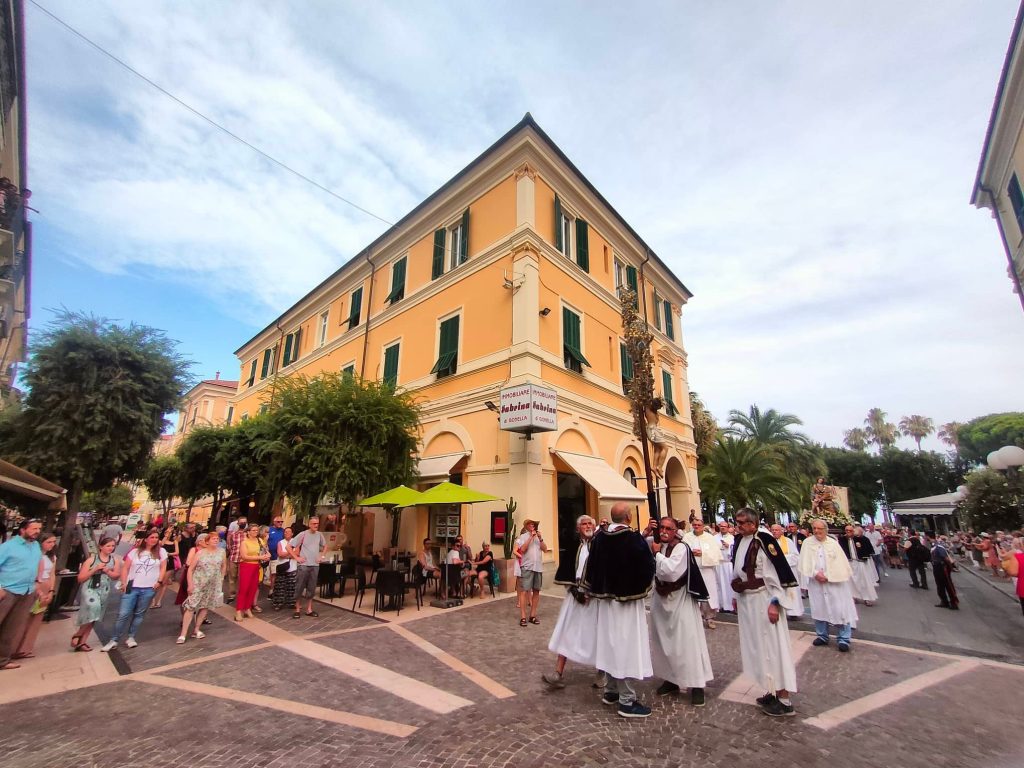 Il corteo religioso, che è partito dalla chiesa parrocchiale dopo la celebrazione dei Vespri, ha visto la partecipazione della banda musicale e di numerose confraternite del territorio imperiese.