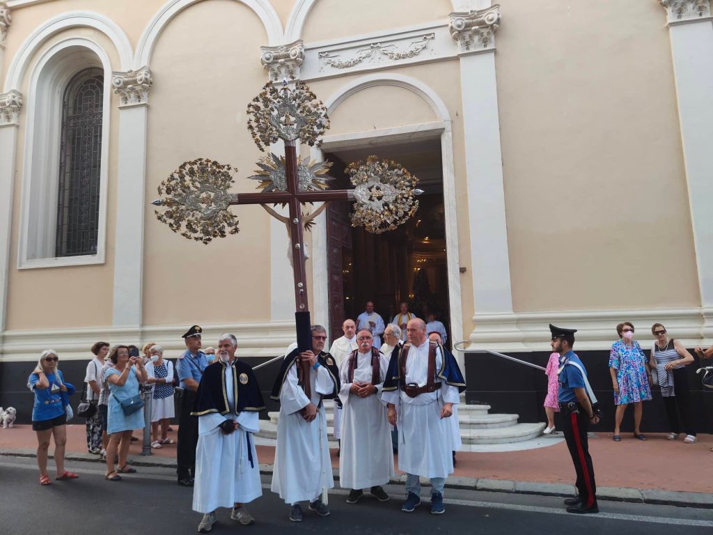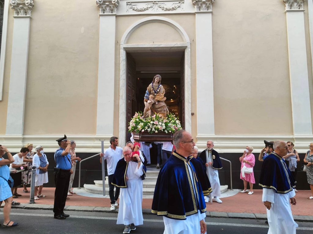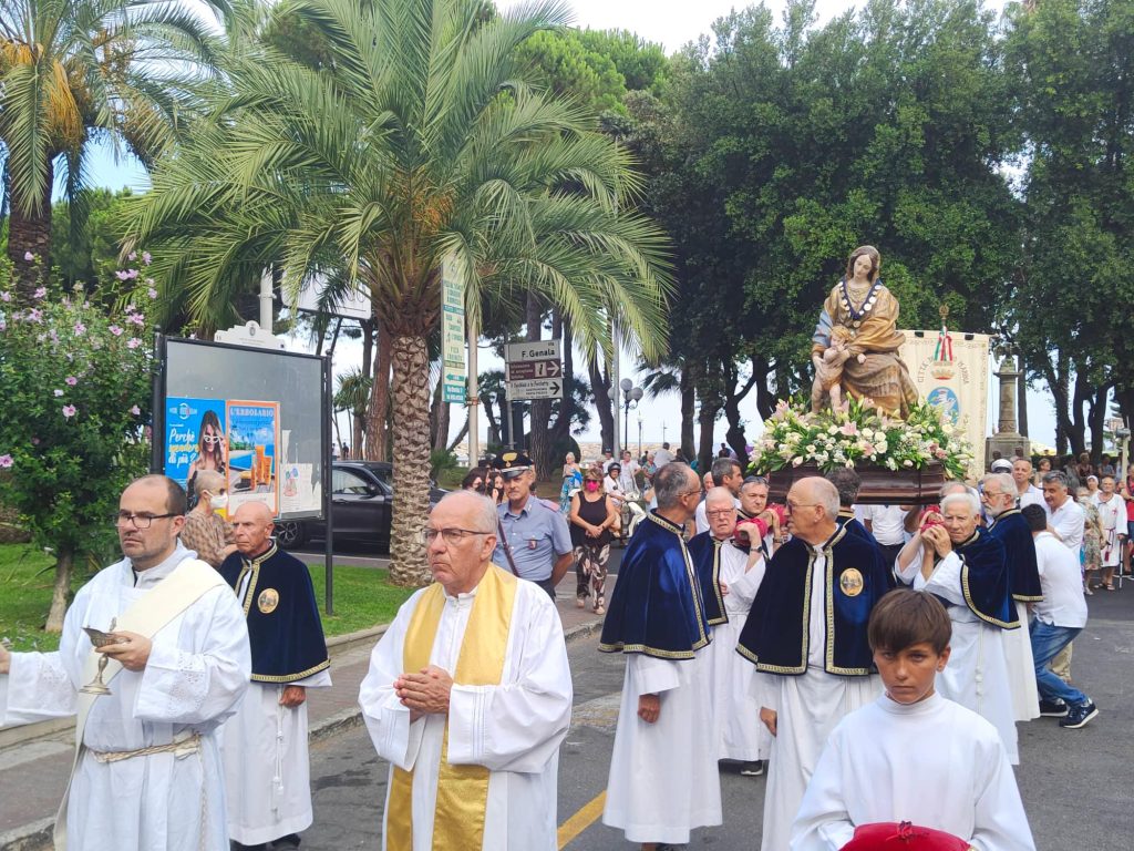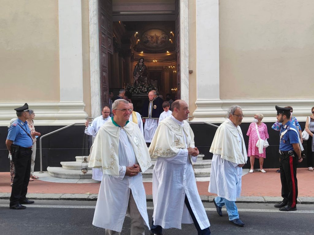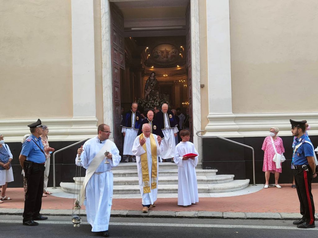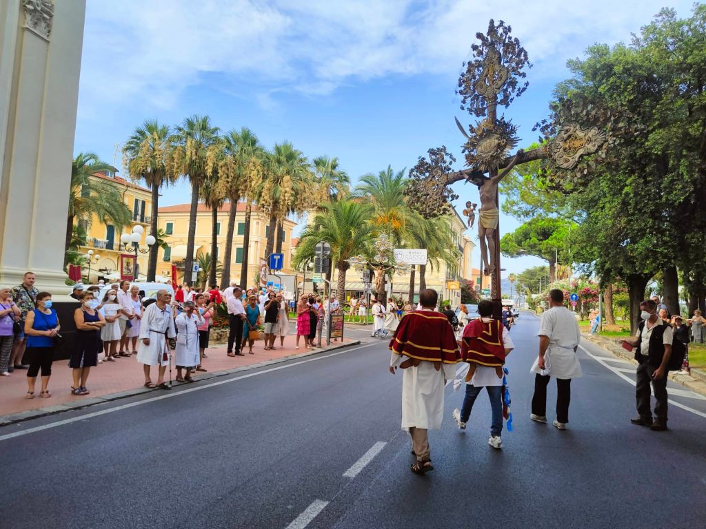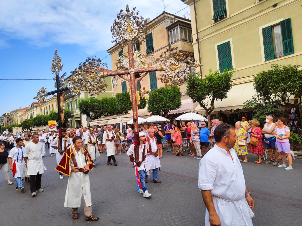 Il corteo religioso, che è partito dalla chiesa parrocchiale dopo la celebrazione dei Vespri, ha visto la partecipazione della banda musicale e di numerose confraternite del territorio imperiese.