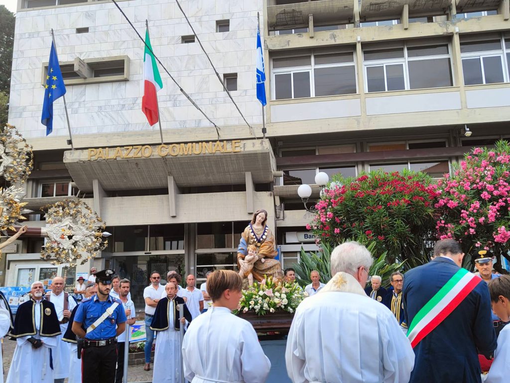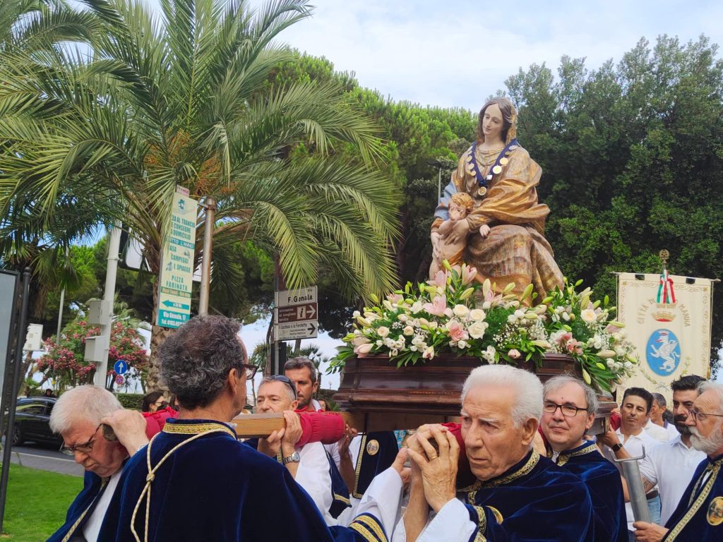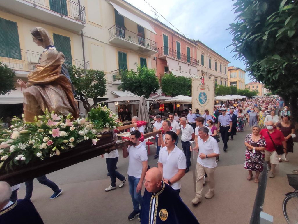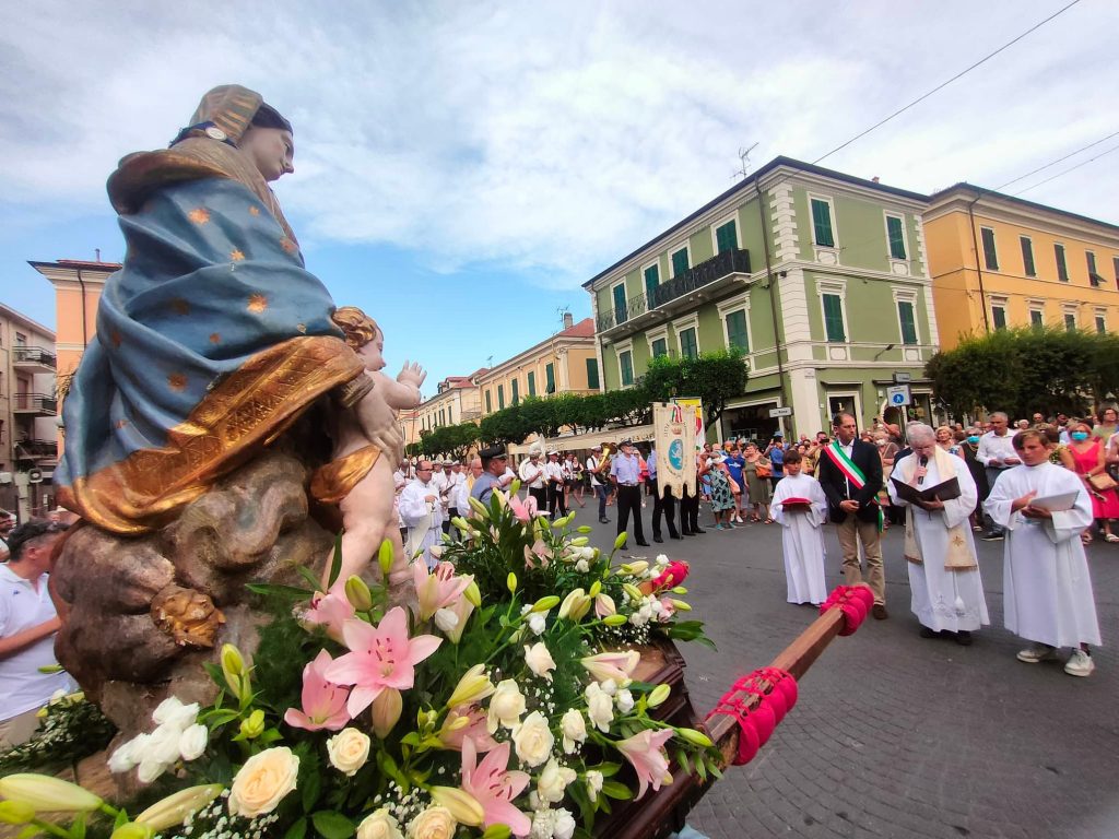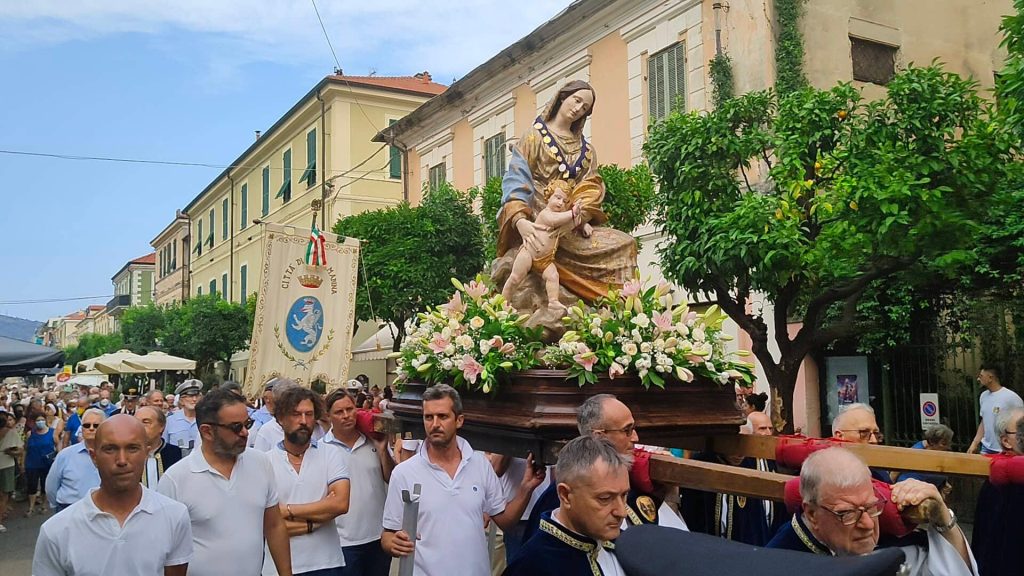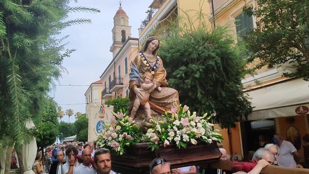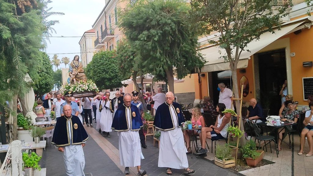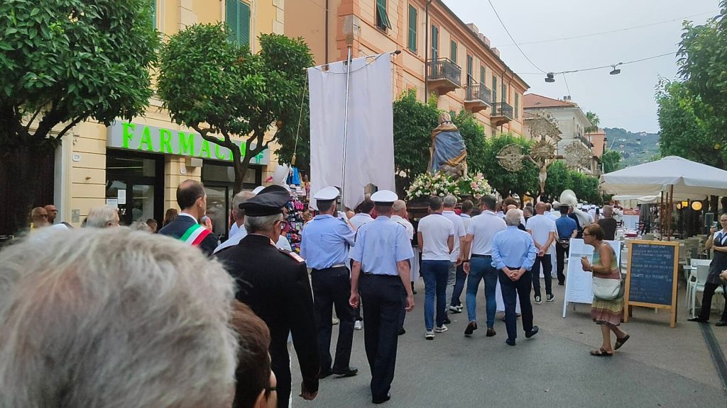 Nel tardo pomeriggio di oggi si è snodata per le vie del centro di Diano Marina la processione in onore della Madonna del Carmine, Patrona della Città.
