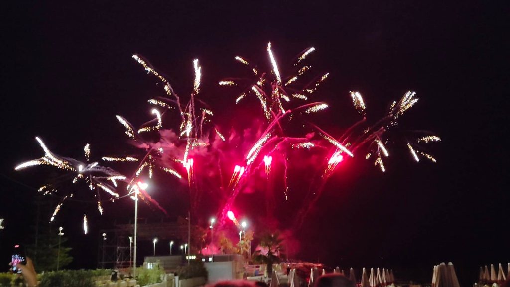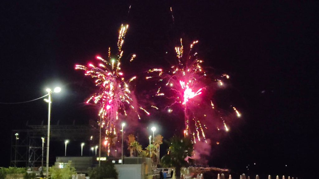 Dopo la processione, tenutasi nel tardo pomeriggio per le vie del centro, la notte dianese è stata illuminata dal tradizionale spettacolo di fuochi artificiali sul mare.