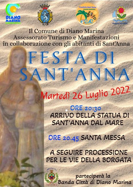 Martedì 26 luglio si svolgerà una magnifica serata con la partecipazione delle Autorità cittadine civili e militari, la Banda Città di Diano Marina e la Confraternita della Santissima Annunziata di Diano Marina.