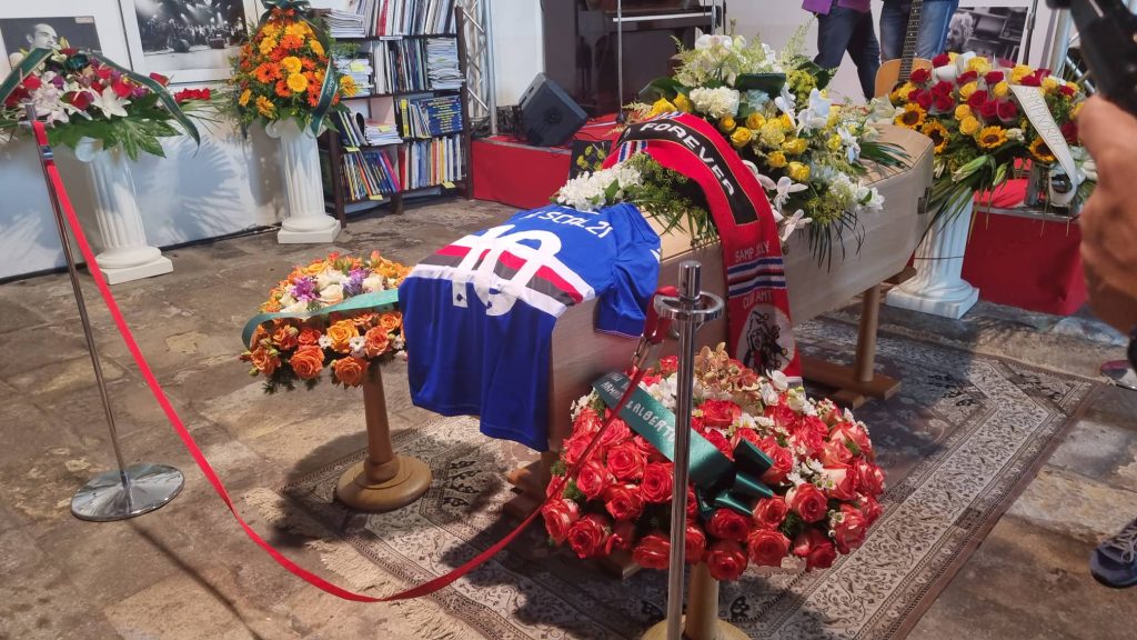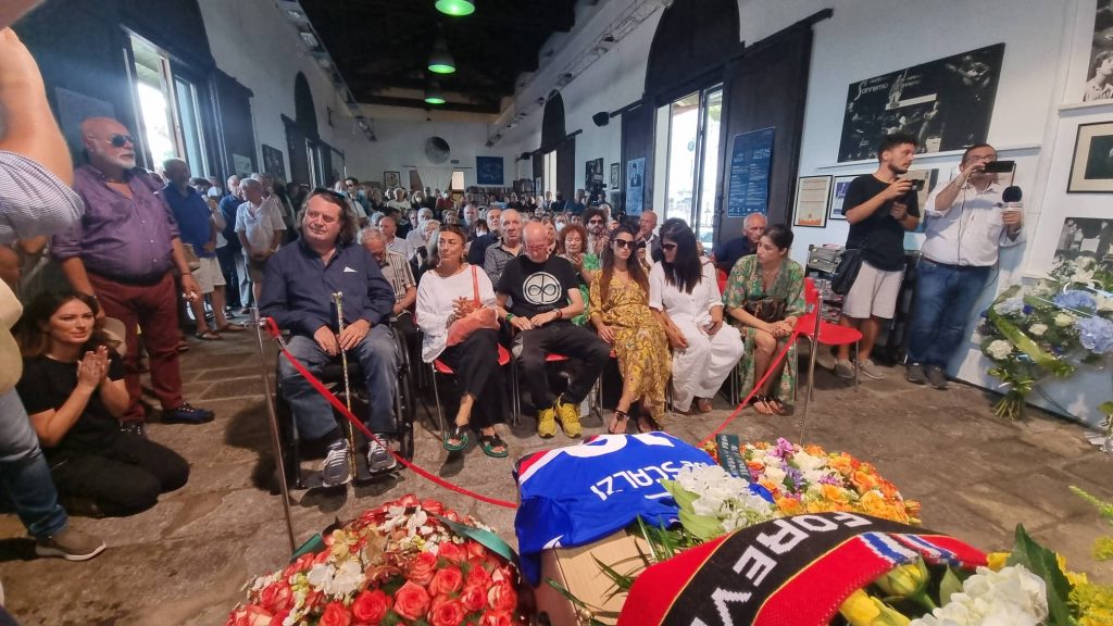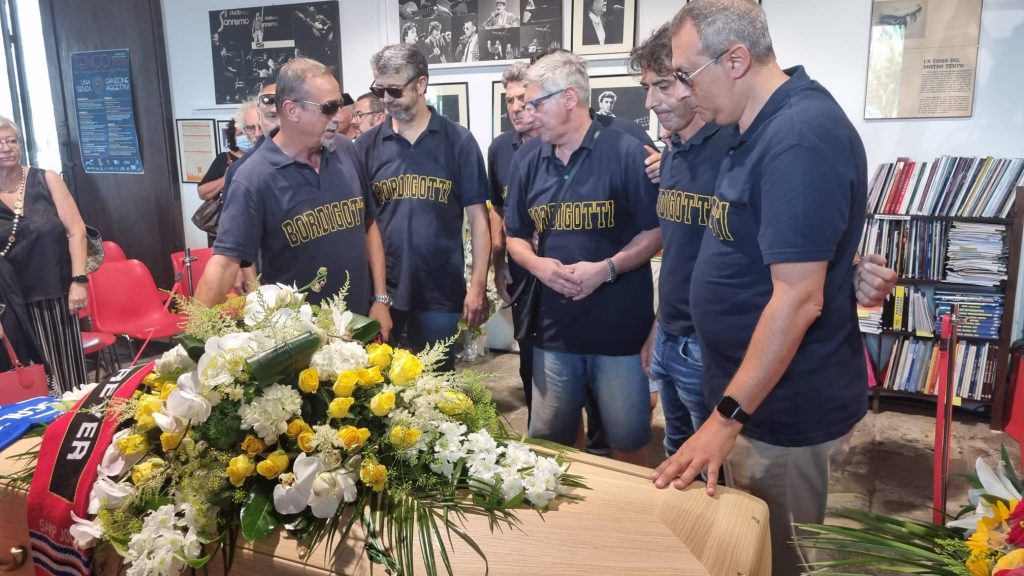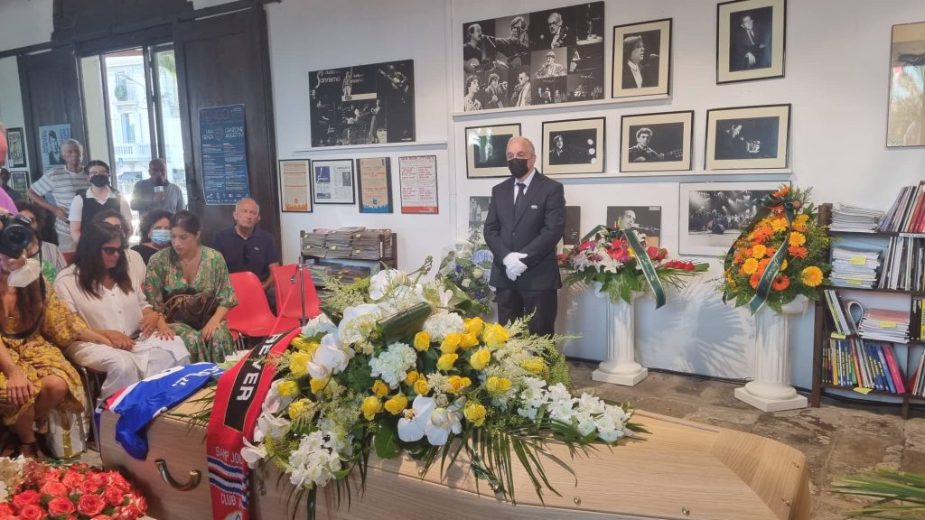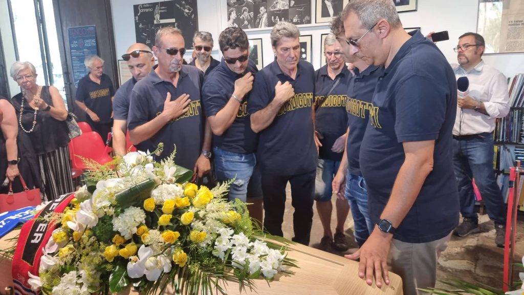 Sulla bara è stata posata la maglia della Sampdoria, di cui era grande tifoso e a cui aveva dedicato la canzone “Lettera da Amsterdam” che risuona prima di ogni partita.