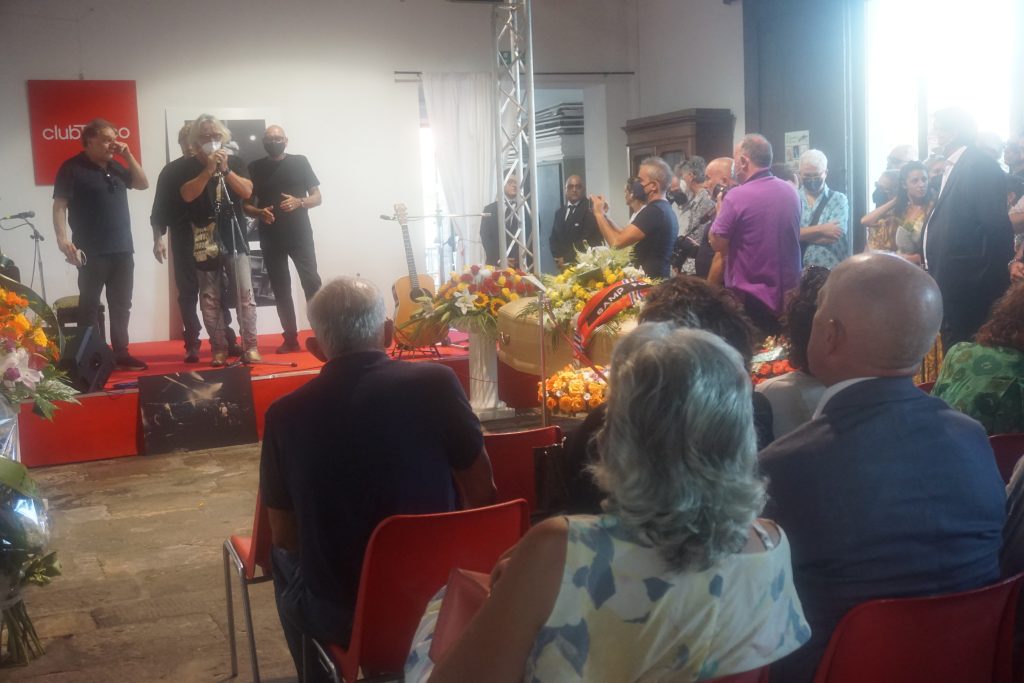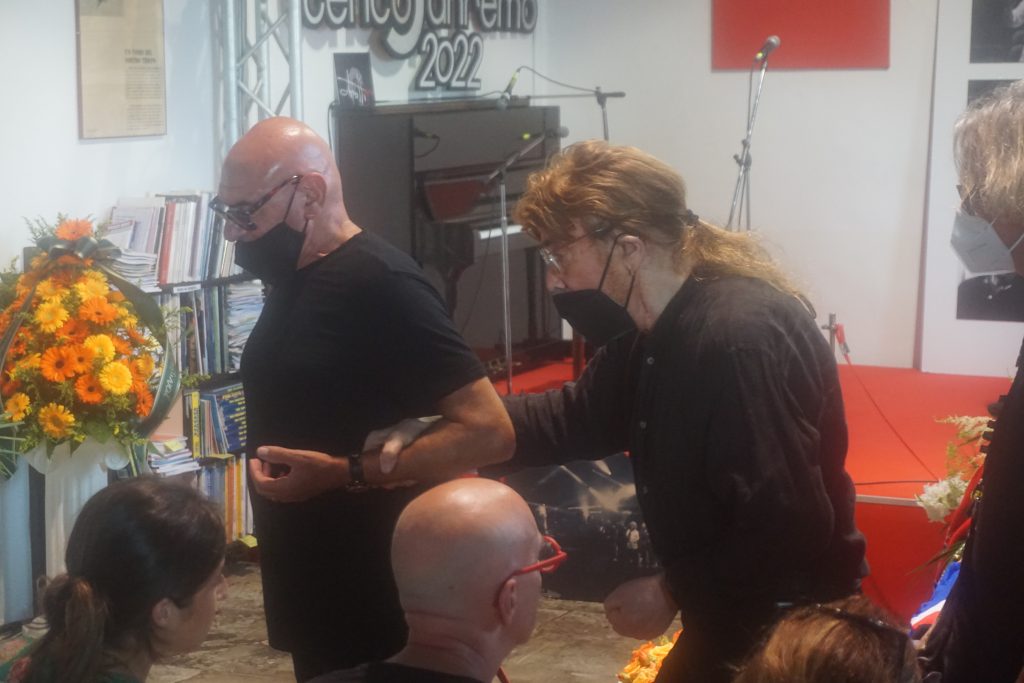 In sala, oltre ai familiari, i figli Armanda e Alberto, la moglie Mara e il fratello Aldo, il sindaco di Sanremo Alberto Biancheri, il discografico Stefano Senardi, il fondatore di Eataly Oscar Farinetti e rappresentanti del gruppo musicale New Trolls, da Nico di Palo e Gianni Belleno. Presente anche Pino Scarpettini.