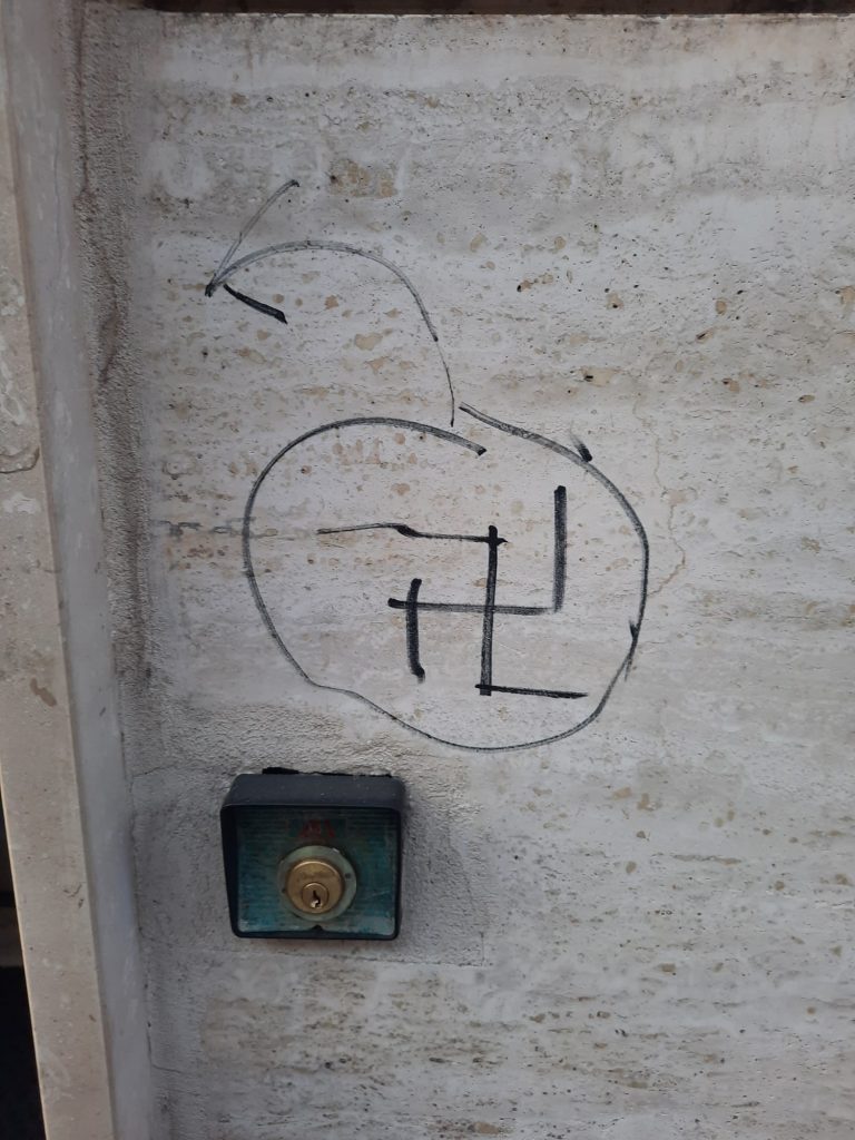 “Questa mattina entrando nella sede della Camera del Lavoro abbiamo trovato un’amara ed ignobile sorpresa: una svastica è comparsa nella notte a deturpare la nostra entrata, accompagnata da una freccia che indica inequivocabilmente la nostra sede“.