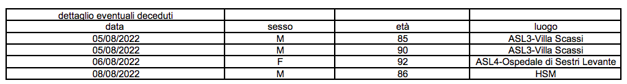 Sono quattro i decessi registrati in tutto il territorio regionale, nell’arco delle ultime 24 ore;