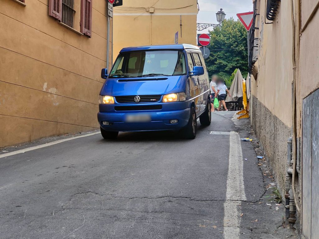 Via Bruno Gazzano, che lo ricordiamo è una strada chiusa, viene imboccata non solo da tanti residenti ma anche da chi deve raggiungere il parcheggio Senatore Amadeo che si trova proprio sotto al Comando della Polizia Locale.