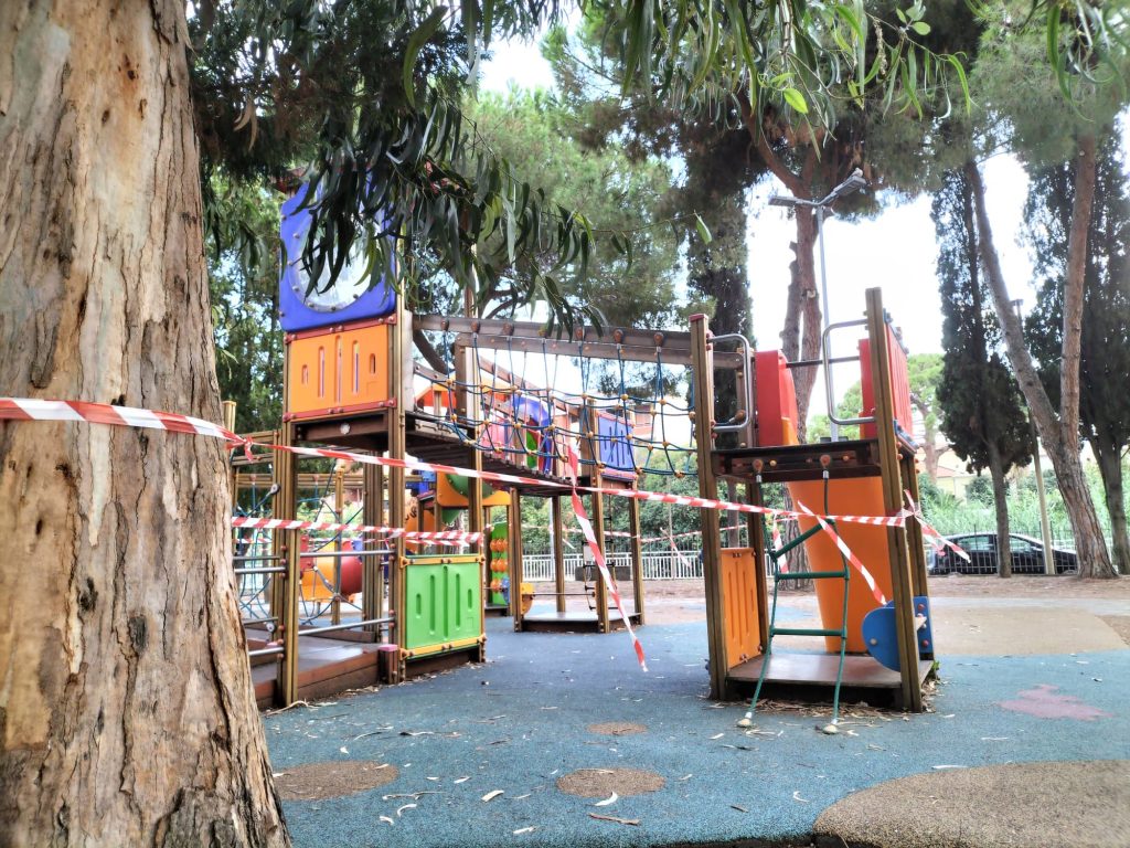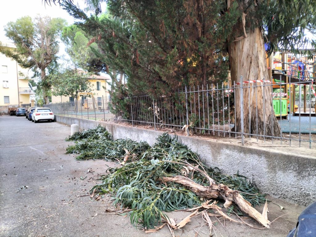 Diano Marina: grosso ramo cade da un albero, tragedia sfiorata al parco giochi di via Campodonico