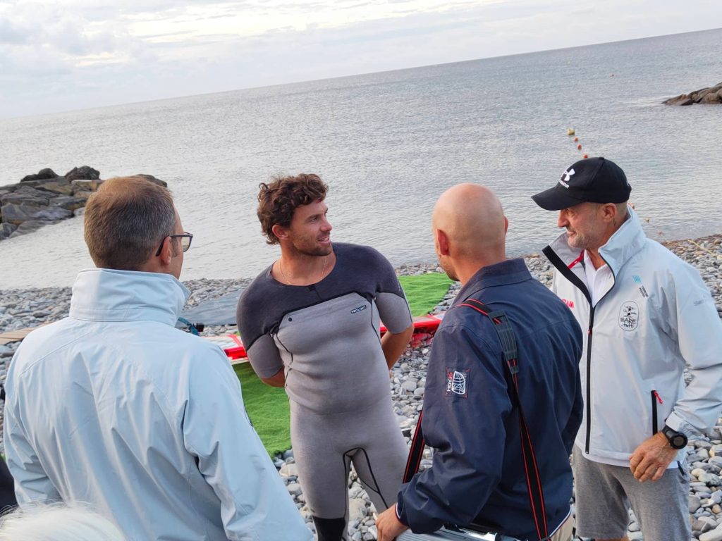 “Oggi festeggiamo i 40 anni della Rabina, ospitando questo evento da Guinness world record, che è la traversata del mar Ligure. È la prima volta che un atleta del calibro di Iachino si cimenta in questa traversata.