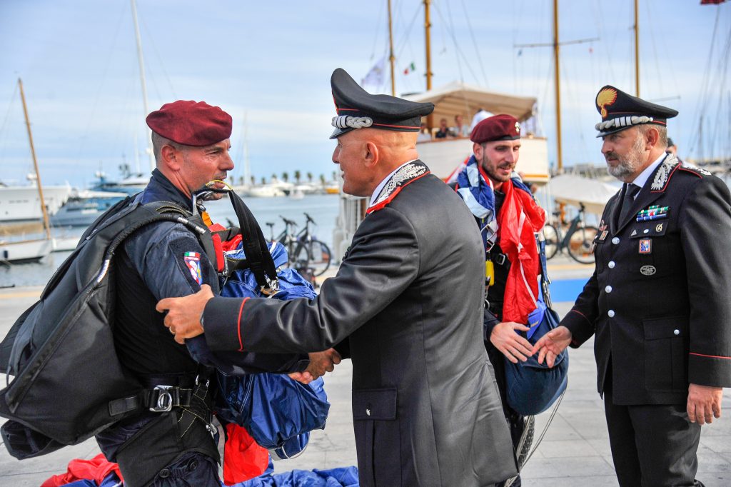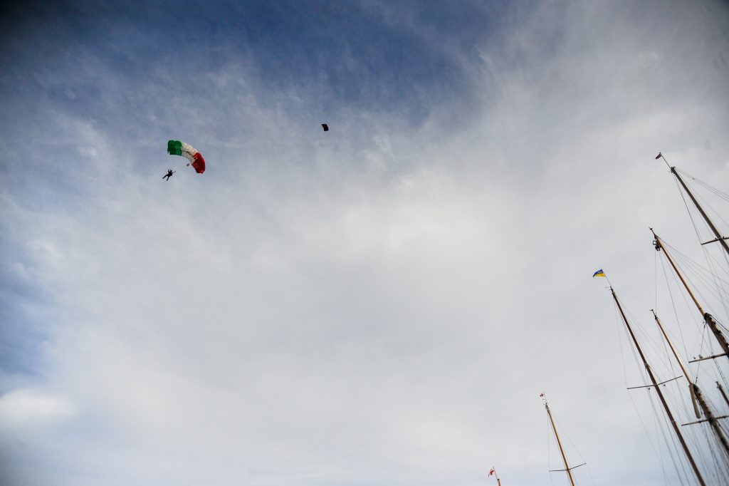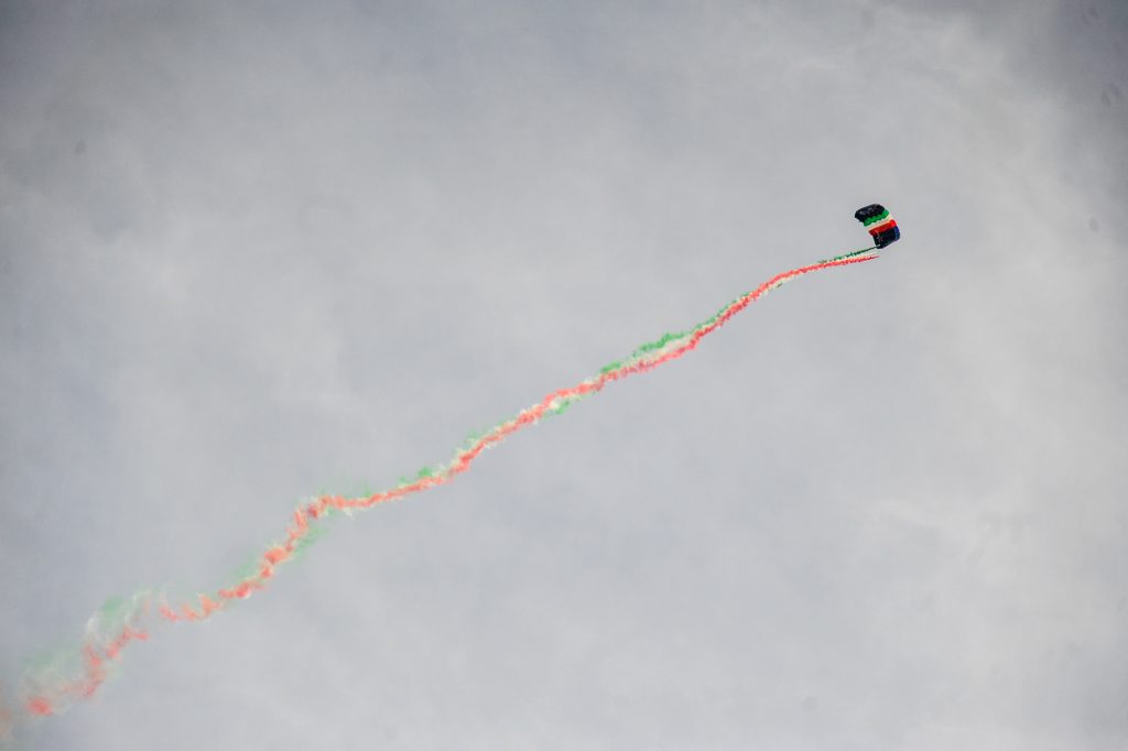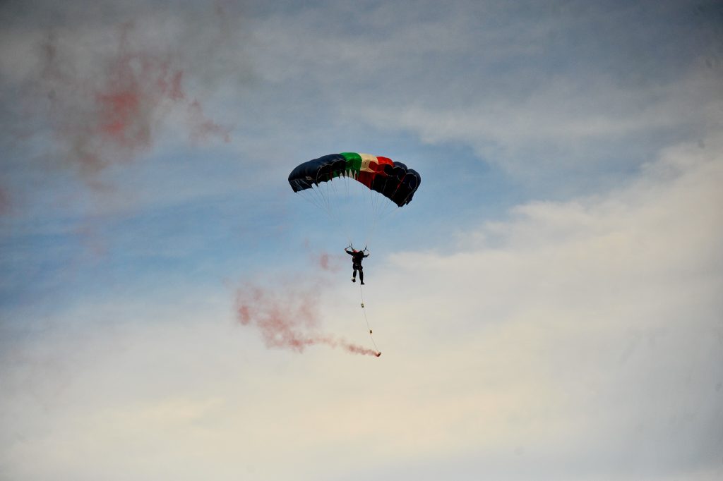 Ad aprire la manifestazioni sono stati i paracadutisti, che hanno calato il Tricolore dal cielo.