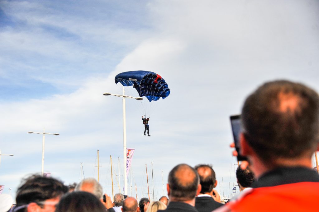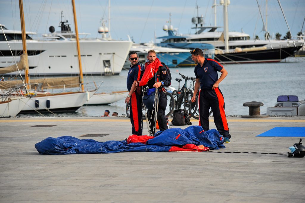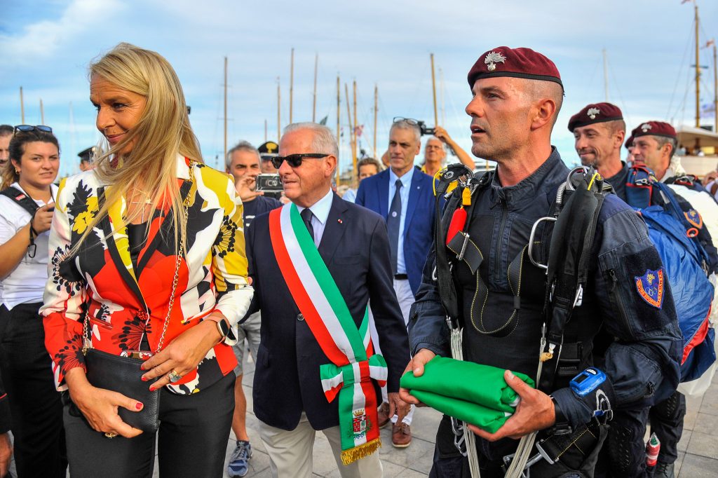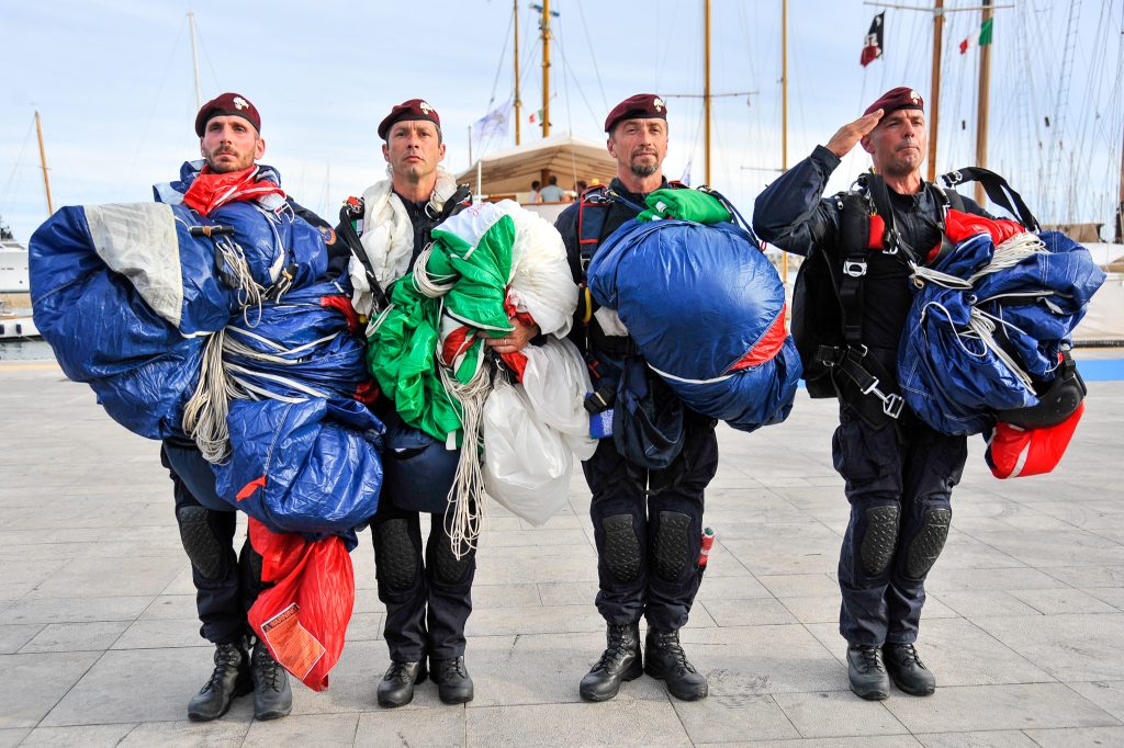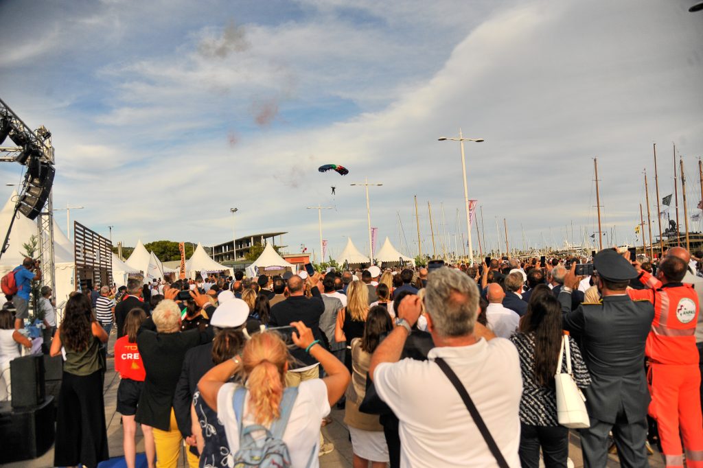 Ad aprire la manifestazioni sono stati i paracadutisti, che hanno calato il Tricolore dal cielo.