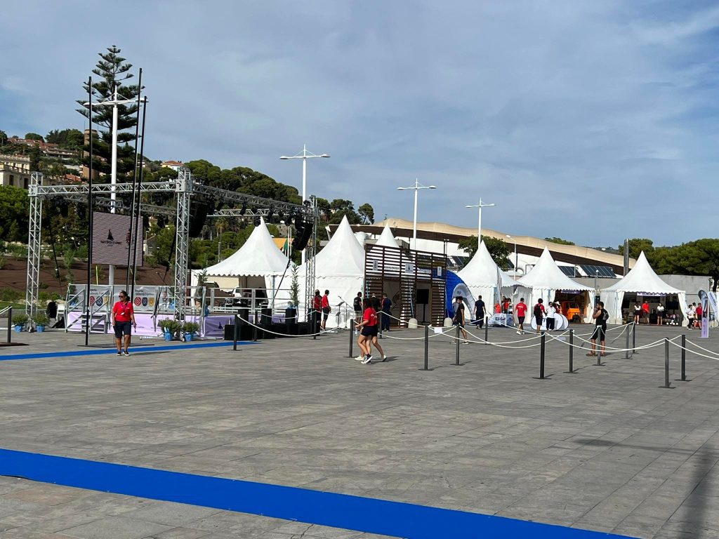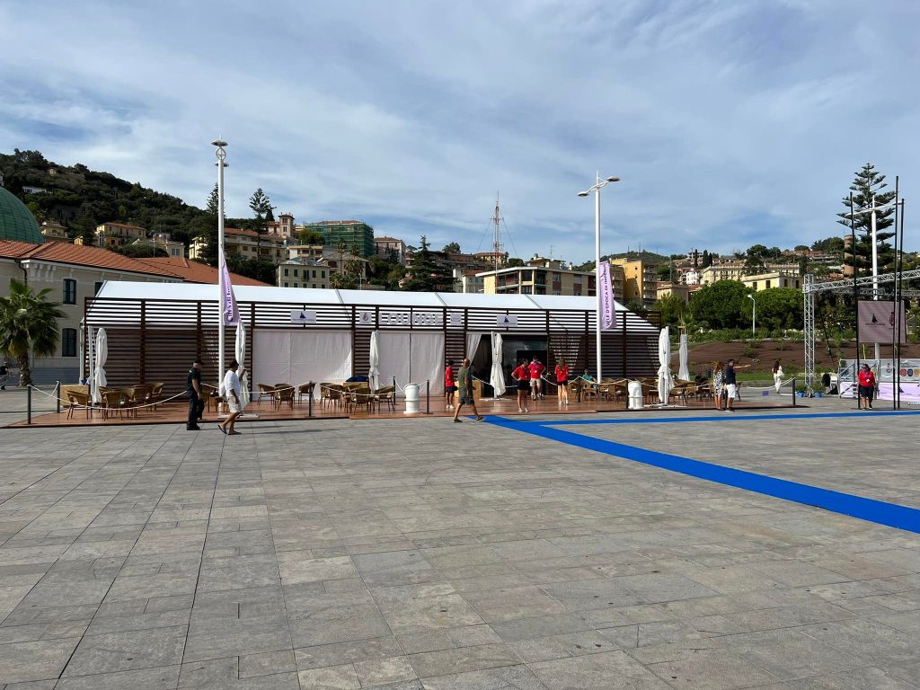 Sguardo al Green, con le boe elettriche, ci sono le bici elettriche, i monopattini elettrici, ci sono stand che fanno vedere la storia della città di Imperia, la storia delle vele d’epoca.