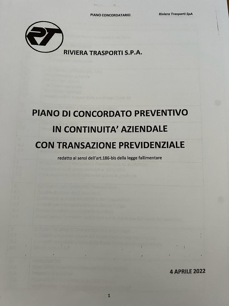 La relazione del Consiglio di amministrazione di Rt, che costituisce la premessa al Piano concordatario, evidenzia non solo la storia della Riviera Trasporti, dalla sua creazione avvenuta nel 1975, ma anche l’evoluzione delle normative del settore e i problemi nazionali e locali che si sono via via generati, fino ad arrivare all’emergenza per la pandemia, che ha avuto pesanti contraccolpi anche sul trasporto pubblico e sui servizi scolastici.