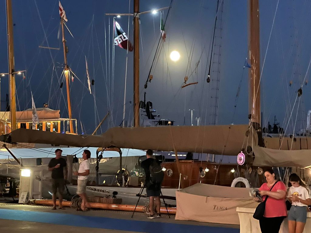 La notte nella banchina di Calata Anselmi e in tutto Borgo Marina è all’insegna della festa per il Raduno delle Vele d’Epoca, ormai entrato nel vivo. La serata di oggi ha visto un alternarsi di emozioni con musica Anni ’60 e ’70 proposta dall’orchestra MarshMallow e con lo spettacolo “La luna sulle vele”.