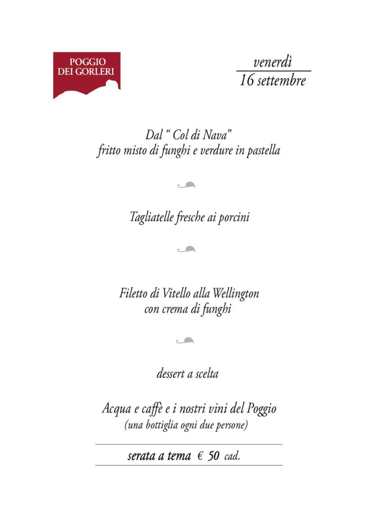 Una cena dedicata al porcino per dare il benvenuto all’autunno ormai alle porte. È questo il tema della serata speciale ideata per venerdì 16 settembre, dalle ore 20, dal Poggio dei Gorleri “Wine Restaurant”, in via San Leonardo 1, a Diano Marina.