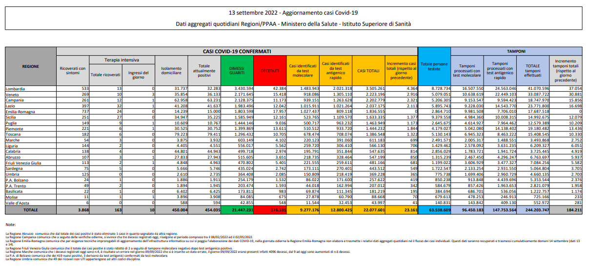 Sono 23.161 i nuovi casi di Coronavirus registrati su tutto il territorio nazionale, nell’arco delle ultime 24 ore (Ieri erano 6.415, anche per via dell’esiguo numero di tamponi effettuati nel weeknd).