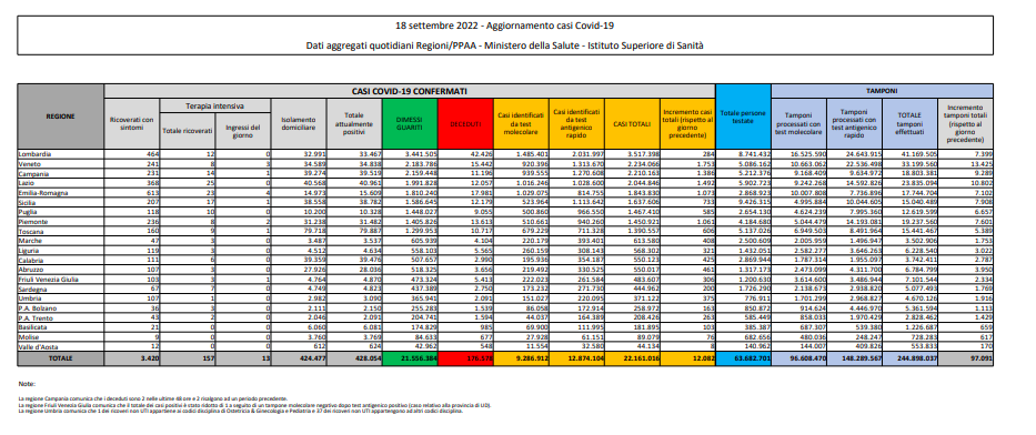 - Dimessi / Guariti 21.556.384 (+ 10.946)