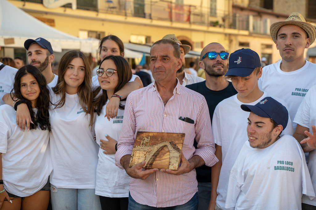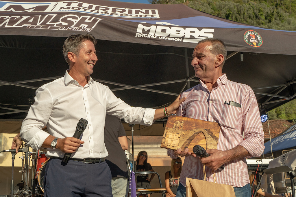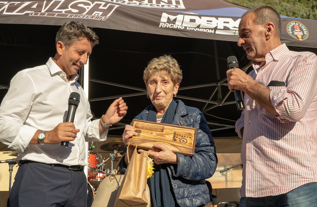 Sono state consegnate anche due ulteriori targhe. La prima a Maddalena Vento, moglie del defunto Christian Antonino di Ca’Mea, a cui la Pro Loco è ancora fortemente legata dal ricordo per l’impegno e l’aiuto ricevuti ad ogni edizione della Sagra. La seconda targa è andata a Francesco Curinga, fresco vincitore Junior Manx Gran Prix. Una festa nella festa se si pensa che il motociclista badalucchese ha fatto tornare a sventolare di nuovo il tricolore sull’Isola di Man, dopo 50 anni, seguendo così le orme di un altro grande pilota, Giacomo Agostini che fece l’impresa con la MV Agusta.