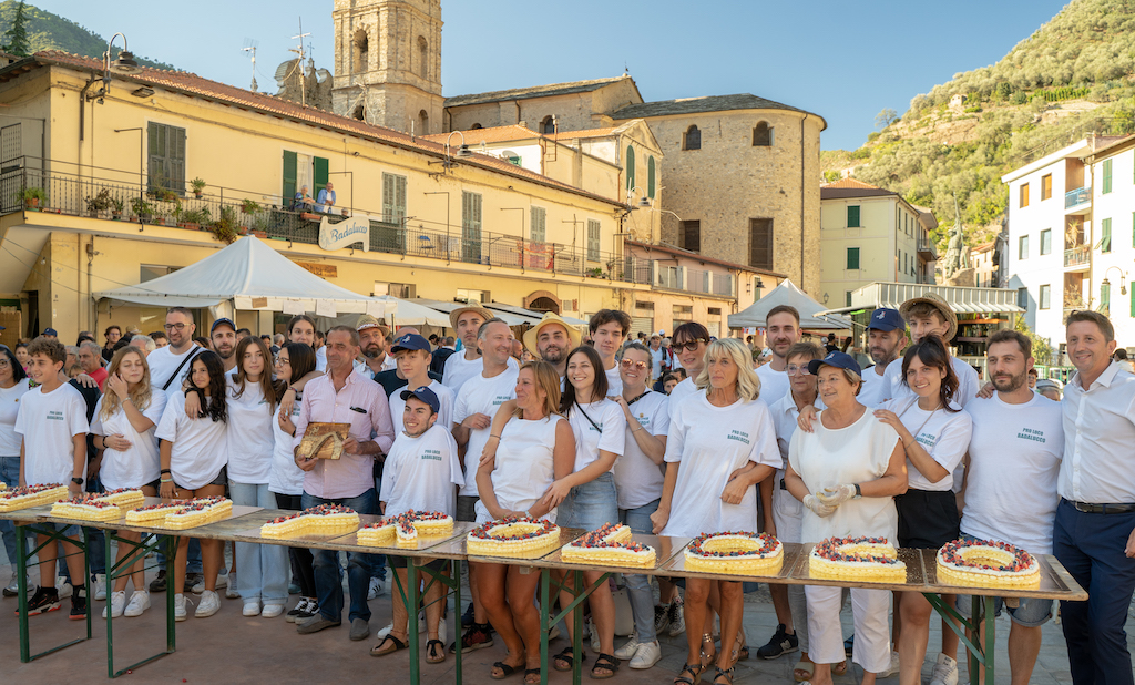 IL COMPLEANNO DELLA PRO LOCO E LE PREMIAZIONI – A sorpresa sono stati celebrati due traguardi importanti per la comunità badalucchese: i 50 anni della Pro Loco di Badalucco, l’ente organizzatore del Festival e i 32 anni di servizio da presidente di Mauro Panizzi. Un momento di forte emozione grazie alla straordinaria vicinanza dimostrata dai tanti ragazzi che animano questa realtà di paese. I due traguardi sono stati salutati con una torta gigante.