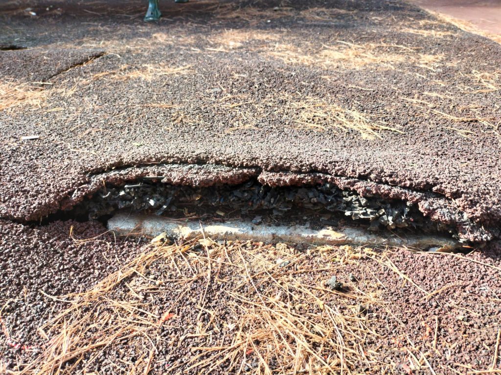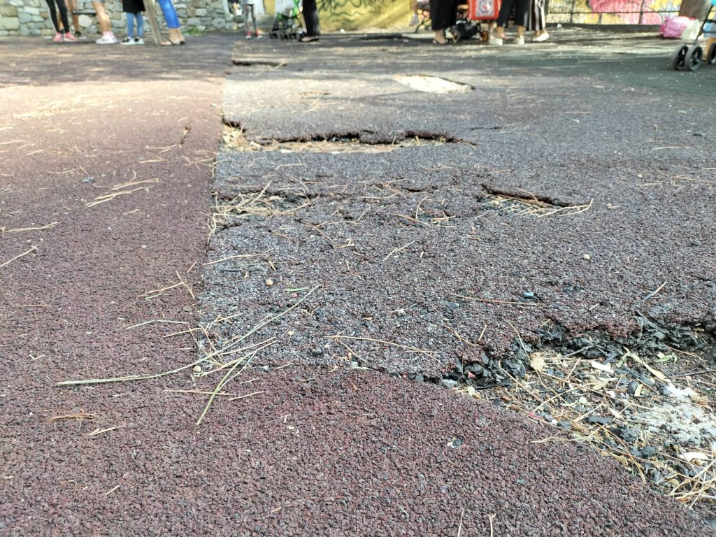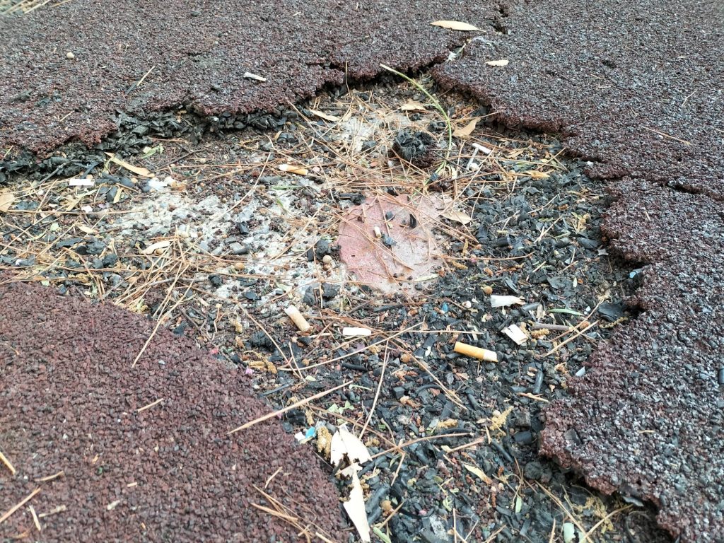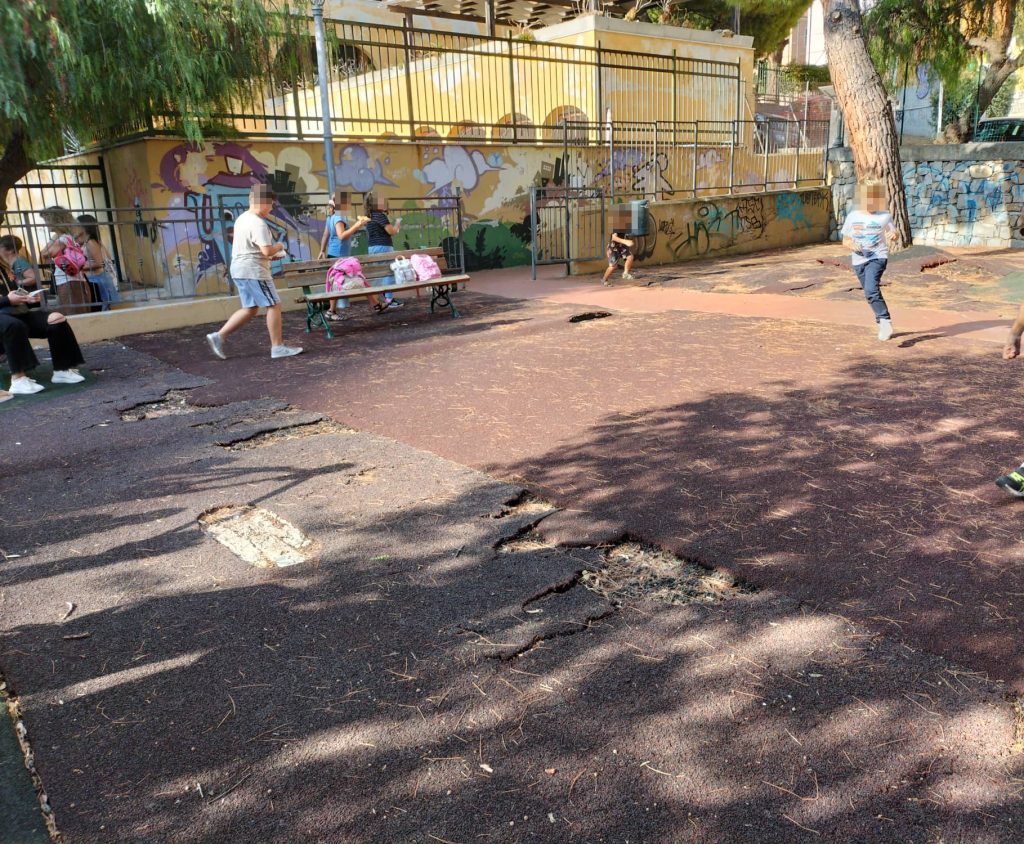 A destare più preoccupazione è il pavimento in gomma, quasi completamente distrutto. Come si può vedere dalle immagini, infatti, sono presenti buchi anche profondi un po’ ovunque e numerosissimi avvallamenti, molto pericolosi per i bambini che ogni giorno frequentano il parco. Oltre alla pavimentazione e ad alcuni giochi rotti, a preoccupare le mamme è anche l’assenza di pulizia.