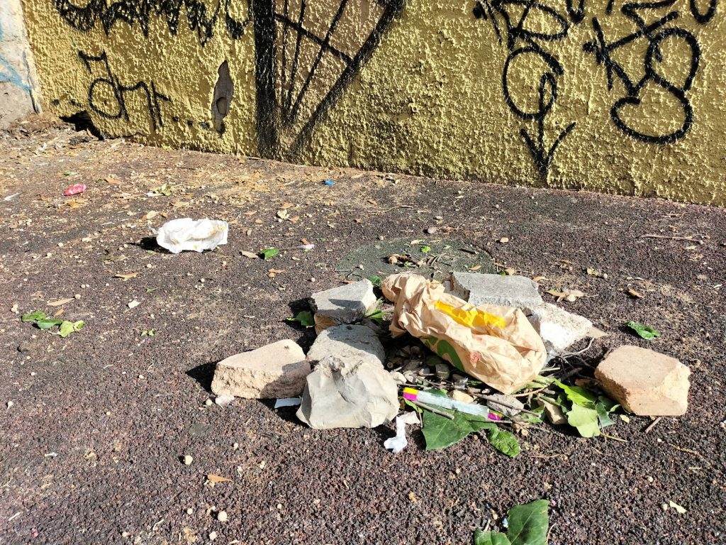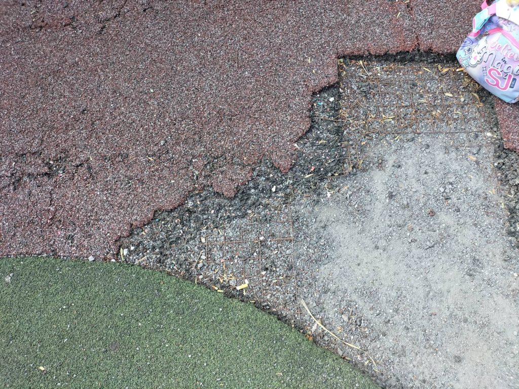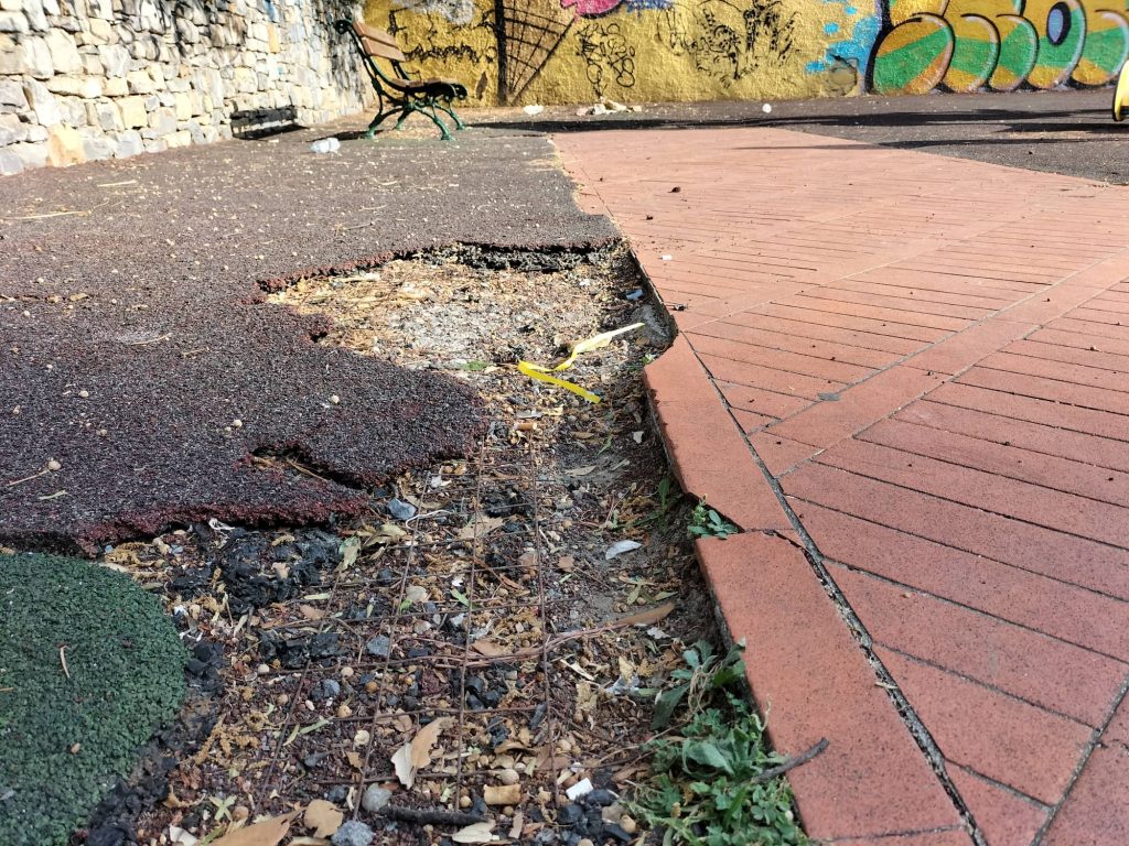 C’è un pavimento veramente molto danneggiato. Pulizia che non esiste, giochi rotti da vandali o ragazzini, gente che bivacca.