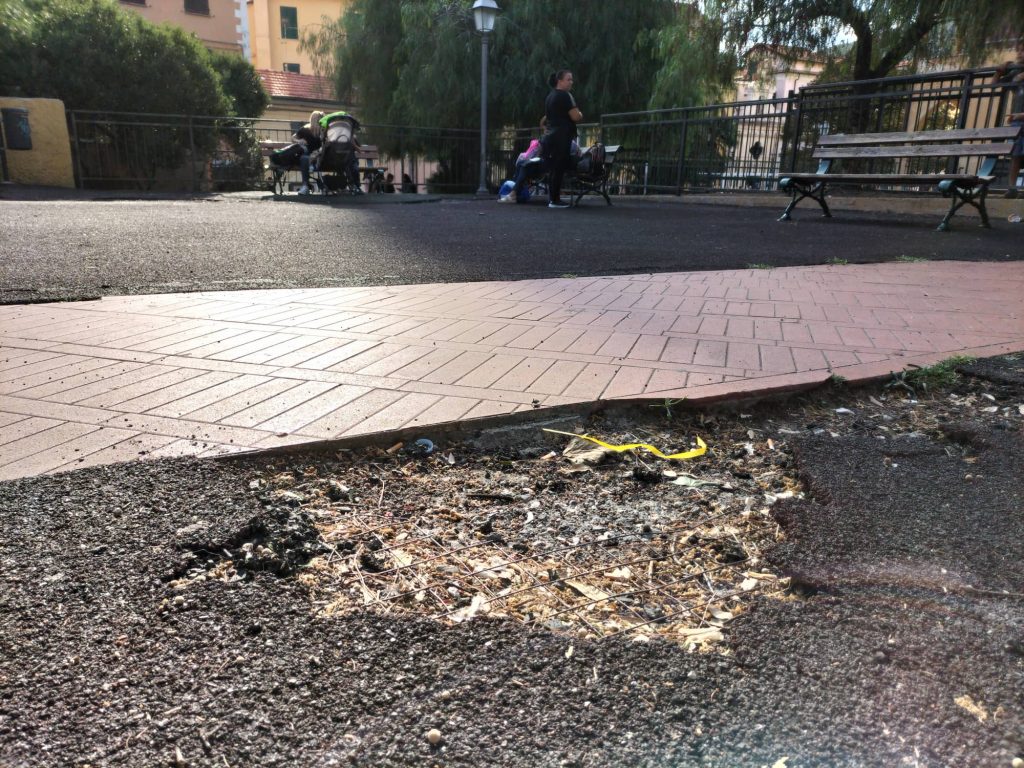 Chiediamo per l’ennesima volta che questo parco sia un pochino più tutelato, per i nostri bimbi e per essere tranquille noi mamme. È il parco più vicino di tutte le scuole di Oneglia, ci saranno 500 bambini che vengono qui. È veramente messo molto male”.