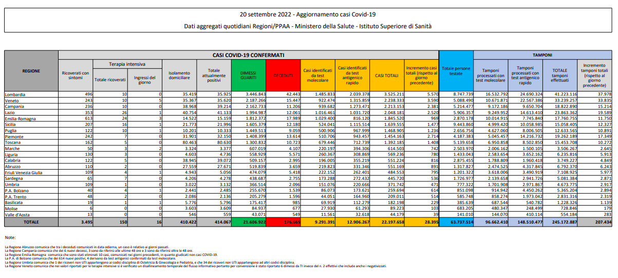 - Dimessi / Guariti 21.606.922 (+41.480 )