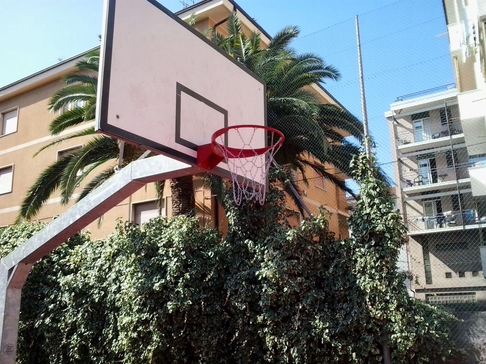 Per risolvere il problema della breve durata delle retine nei campetti all’aperto, la Blue Basket di Diano Marina, ispirandosi all’esperienza dei playground statunitensi, ha deciso di dotare i quattro canestri dei due campetti di Villa Scarsella di reti metalliche a proprie spese.