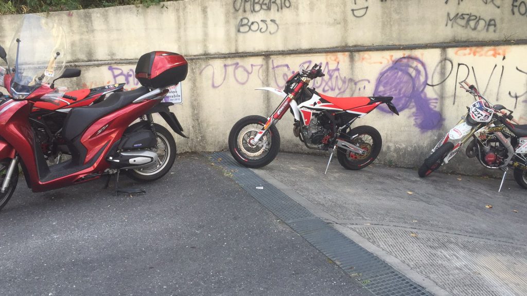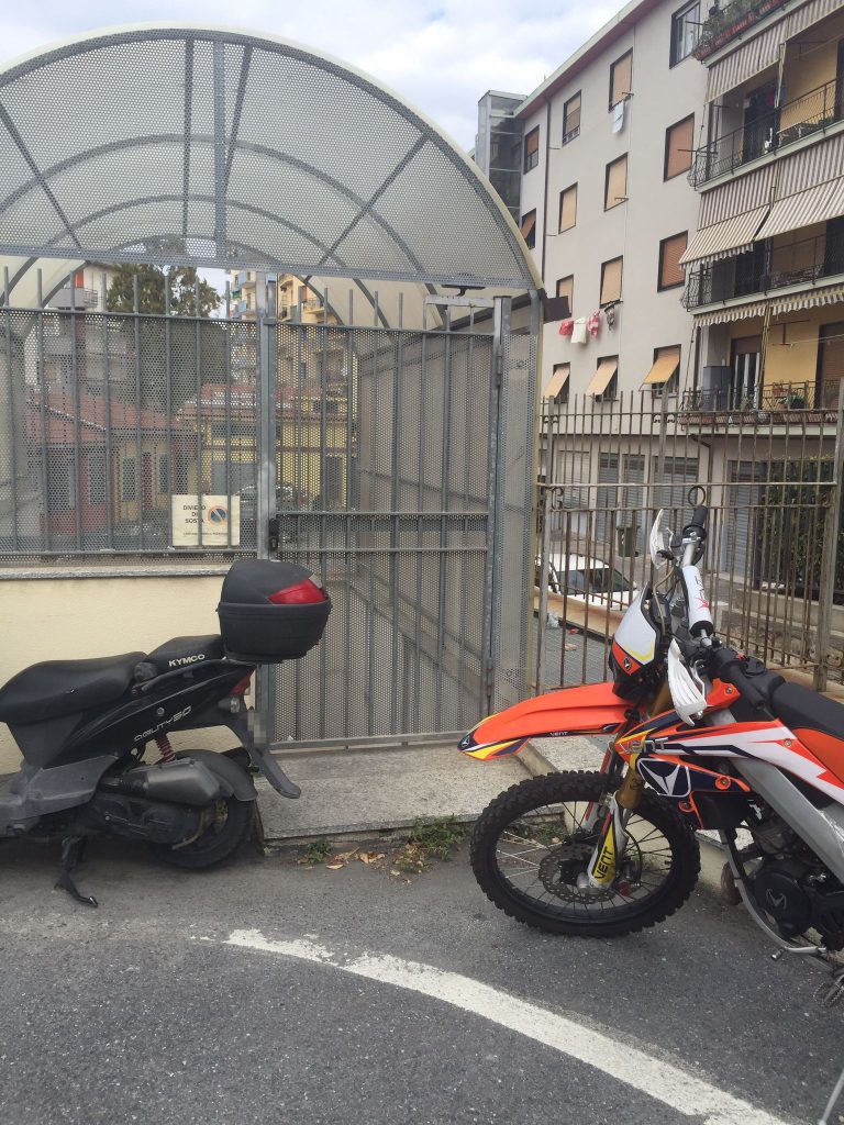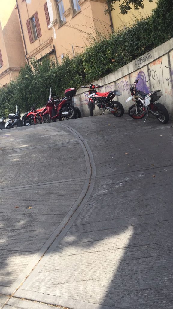Come si può vedere dalle immagini, soprattutto l’ingresso pedonale e l’uscita dei garage, sono presi d’assalto da numerosissime moto e scooter, parcheggiati in ogni dove.